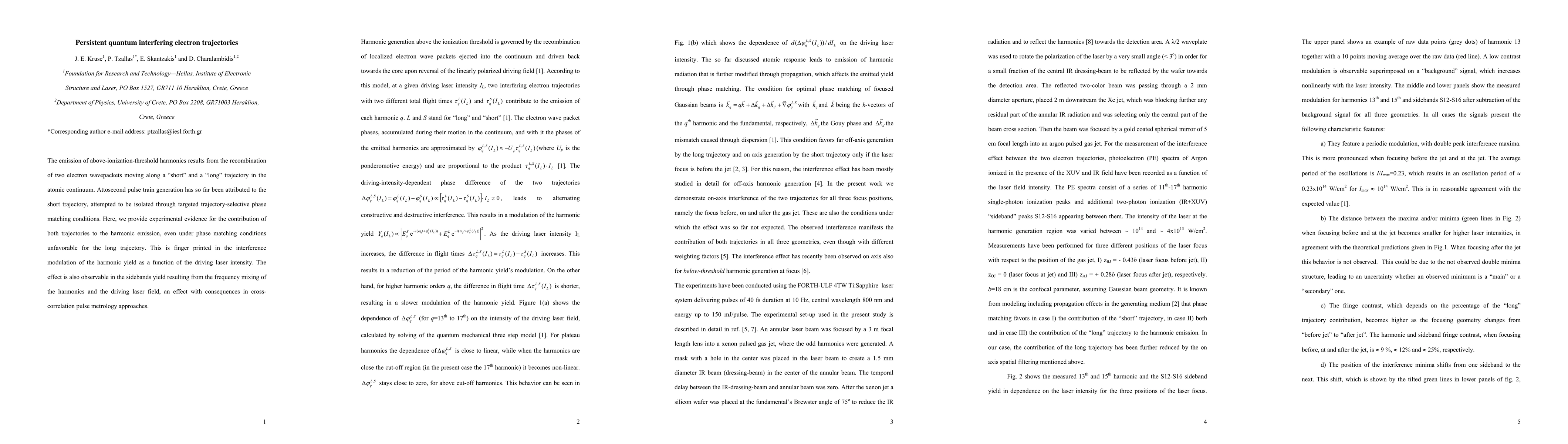 The emission of above-ionization-threshold harmonics results from the recombination of two electron wavepackets moving along a "short" and a "long" trajectory in the atomic continuum. Attosecond pulse train generation has so far been attributed to the short trajectory, attempted to be isolated through targeted trajectory-selective phase matching conditions. Here, we provide experimental evidence for the contribution of both trajectories to the harmonic emission, even under phase matching conditions unfavorable for the long trajectory. This is finger printed in the interference modulation of the harmonic yield as a function of the driving laser intensity. The effect is also observable in the sidebands yield resulting from the frequency mixing of the harmonics and the driving laser field, an effect with consequences in cross-correlation pulse metrology approaches.