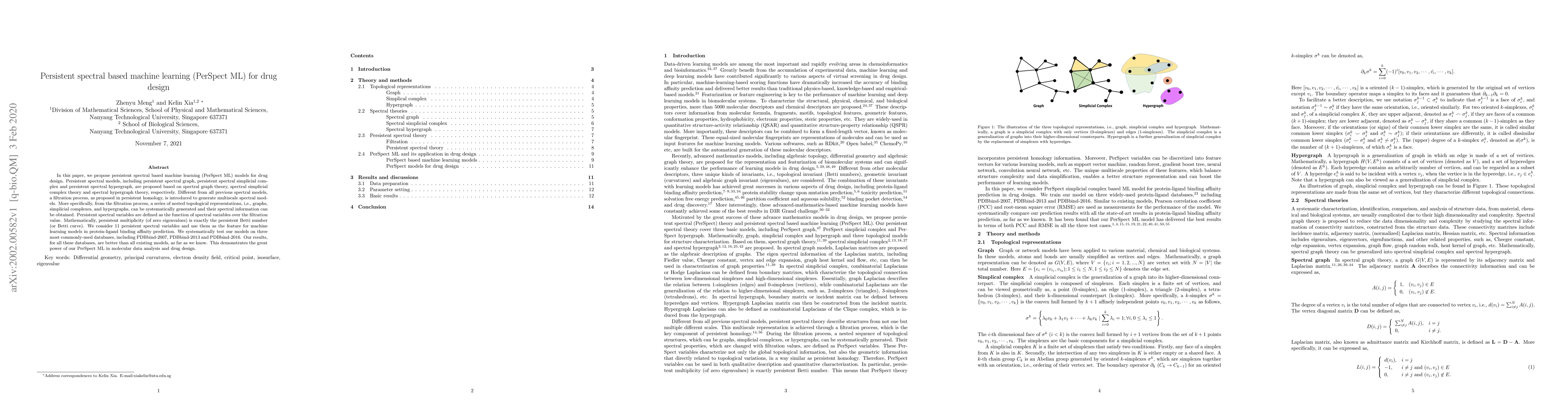 This paper introduces persistent spectral-based machine learning (PerSpect ML) models for drug design, utilizing persistent spectral graph, simplicial complex, and hypergraph theories to generate multiscale spectral models through a filtration process. The proposed models outperform existing methods in predicting protein-ligand binding affinity, as demonstrated by superior results on three major databases.