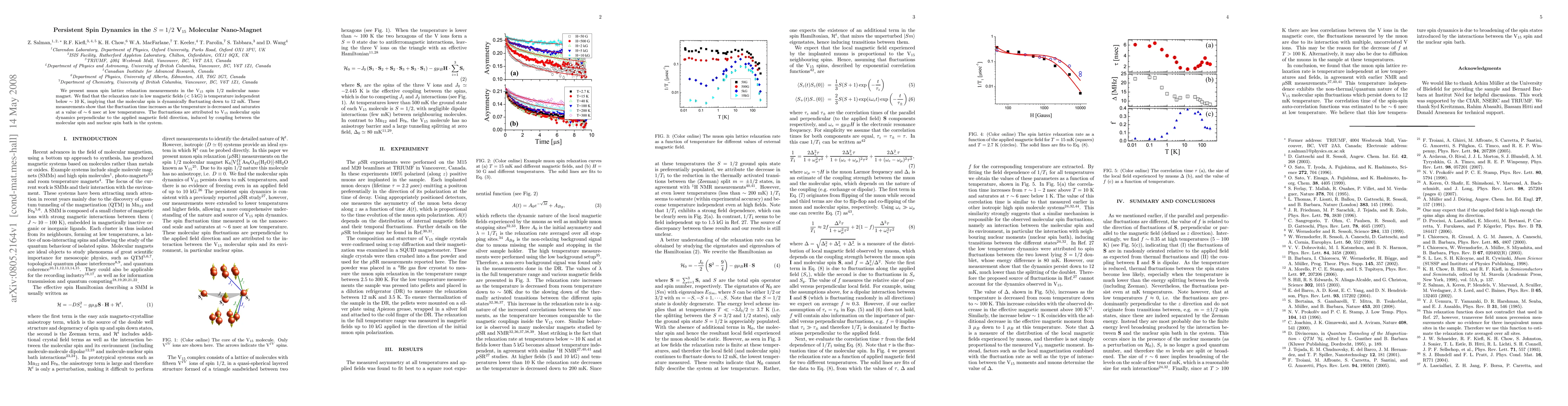 Researchers studied a specific molecule that behaves like a tiny magnet at very low temperatures, finding its magnetic behavior is temperature-independent below 10K. The molecule's magnetic fluctuations increase with decreasing temperature, with the longest observed fluctuation lasting about 6 nanoseconds.