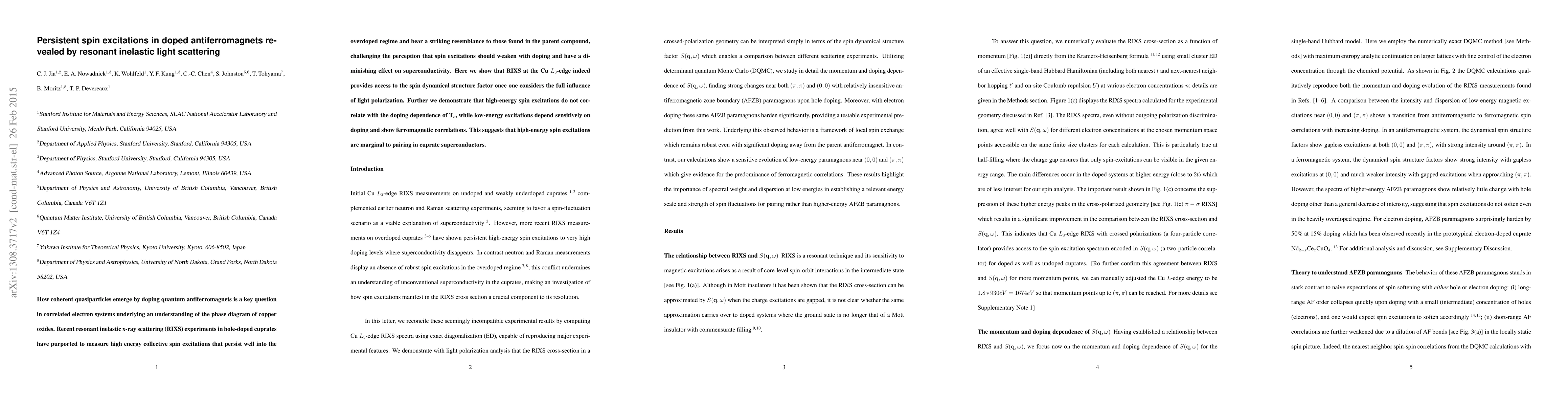 This paper utilizes resonant inelastic X-ray scattering to reveal persistent high-energy spin excitations in doped antiferromagnets, which persist into the overdoped regime and resemble those in the parent compound, challenging the notion that doping weakens spin excitations. The study concludes that these high-energy excitations are not directly linked to the superconducting transition temperature, implying they play a minor role in superconductivity.