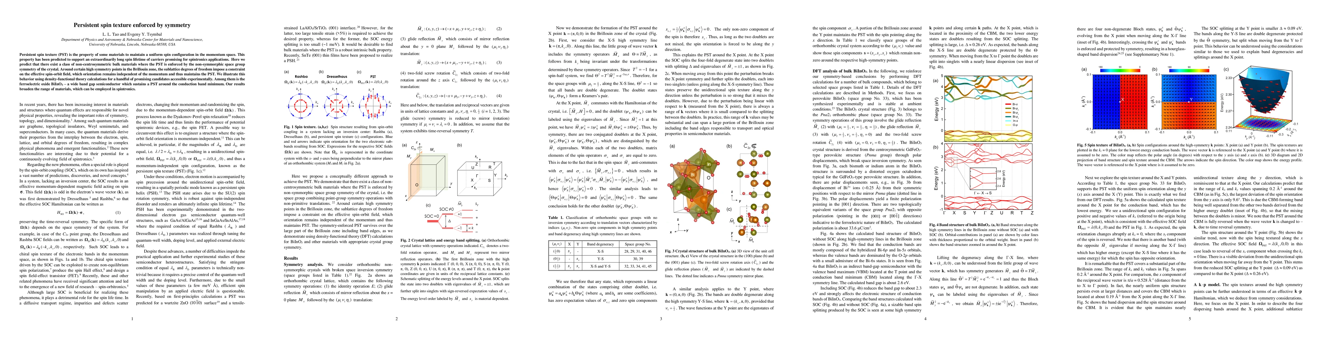 The research identifies a new class of non-centrosymmetric bulk materials where a persistent spin texture (PST) is enforced by crystal symmetry, independent of momentum orientation. This PST property, crucial for spintronics, is demonstrated in a ferroelectric oxide BiInO3 using density-functional theory calculations, broadening material options for spintronics applications.