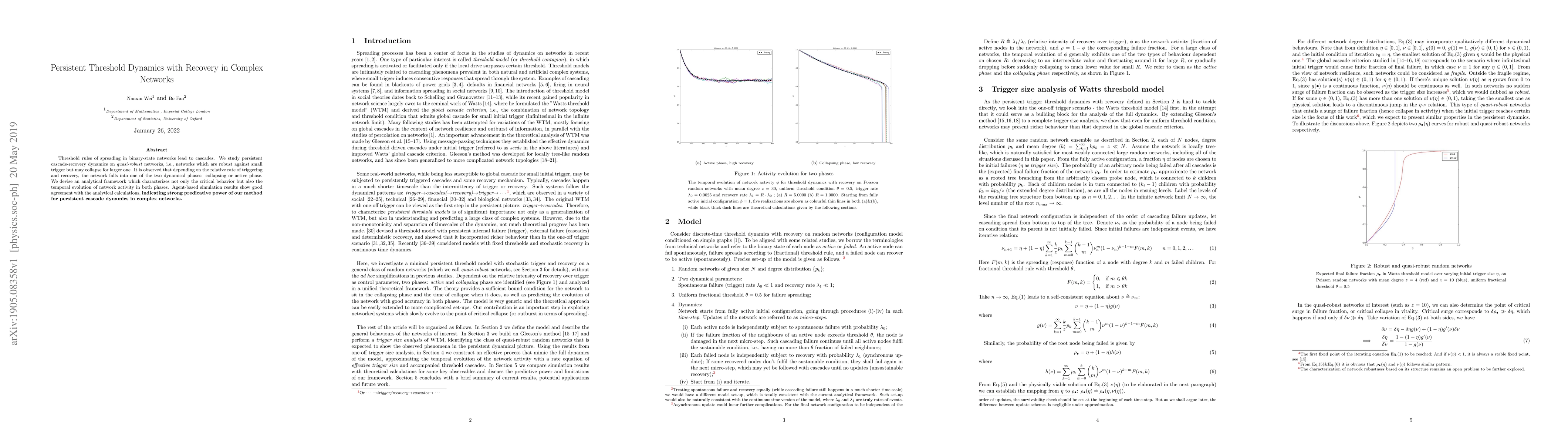 This paper investigates persistent cascade-recovery dynamics in quasi-robust networks, identifying two dynamical phases: collapsing and active. An analytical framework characterizes critical behavior and temporal evolution, validated by agent-based simulations.