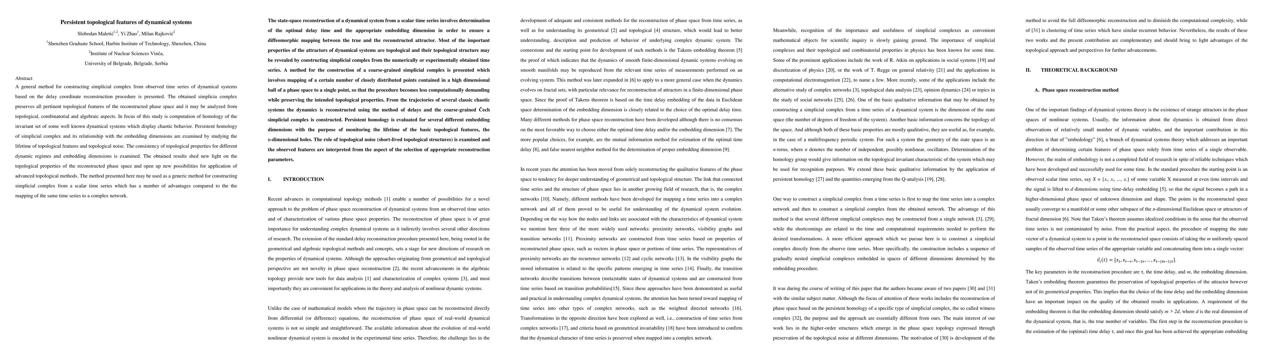 This paper presents a method to construct simplicial complexes from time series data of dynamical systems, preserving their topological features. It examines the persistent homology of these complexes to analyze chaotic behavior and the stability of topological properties across different dynamic regimes and embedding dimensions.
