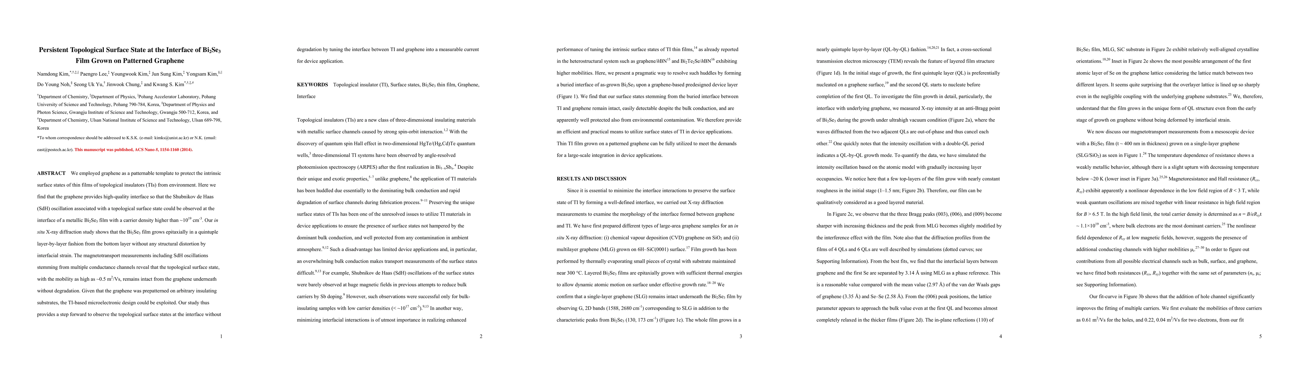 This study demonstrates that graphene can protect the topological surface states of Bi2Se3 films, allowing for the observation of Shubnikov de Haas oscillations at high carrier densities. The epitaxial growth and high mobility of the topological surface state suggest potential for TI-based microelectronic applications.