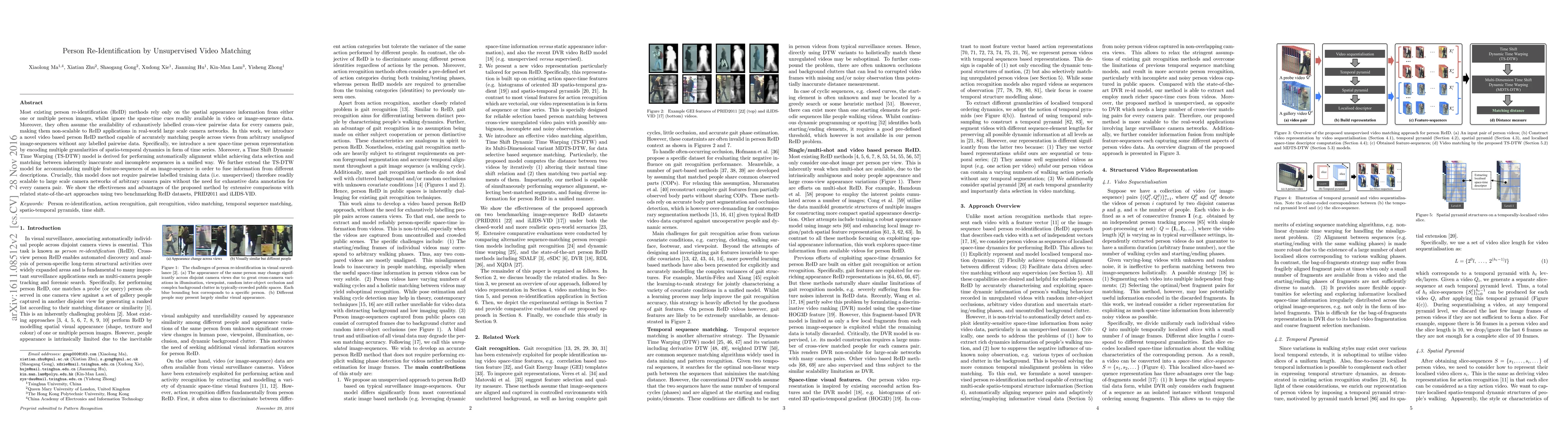 Most existing person re-identification (ReID) methods rely only on the spatial appearance information from either one or multiple person images, whilst ignore the space-time cues readily available in video or image-sequence data. Moreover, they often assume the availability of exhaustively labelled cross-view pairwise data for every camera pair, making them non-scalable to ReID applications in real-world large scale camera networks. In this work, we introduce a novel video based person ReID method capable of accurately matching people across views from arbitrary unaligned image-sequences without any labelled pairwise data. Specifically, we introduce a new space-time person representation by encoding multiple granularities of spatio-temporal dynamics in form of time series. Moreover, a Time Shift Dynamic Time Warping (TS-DTW) model is derived for performing automatically alignment whilst achieving data selection and matching between inherently inaccurate and incomplete sequences in a unified way. We further extend the TS-DTW model for accommodating multiple feature-sequences of an image-sequence in order to fuse information from different descriptions. Crucially, this model does not require pairwise labelled training data (i.e. unsupervised) therefore readily scalable to large scale camera networks of arbitrary camera pairs without the need for exhaustive data annotation for every camera pair. We show the effectiveness and advantages of the proposed method by extensive comparisons with related state-of-the-art approaches using two benchmarking ReID datasets, PRID2011 and iLIDS-VID.