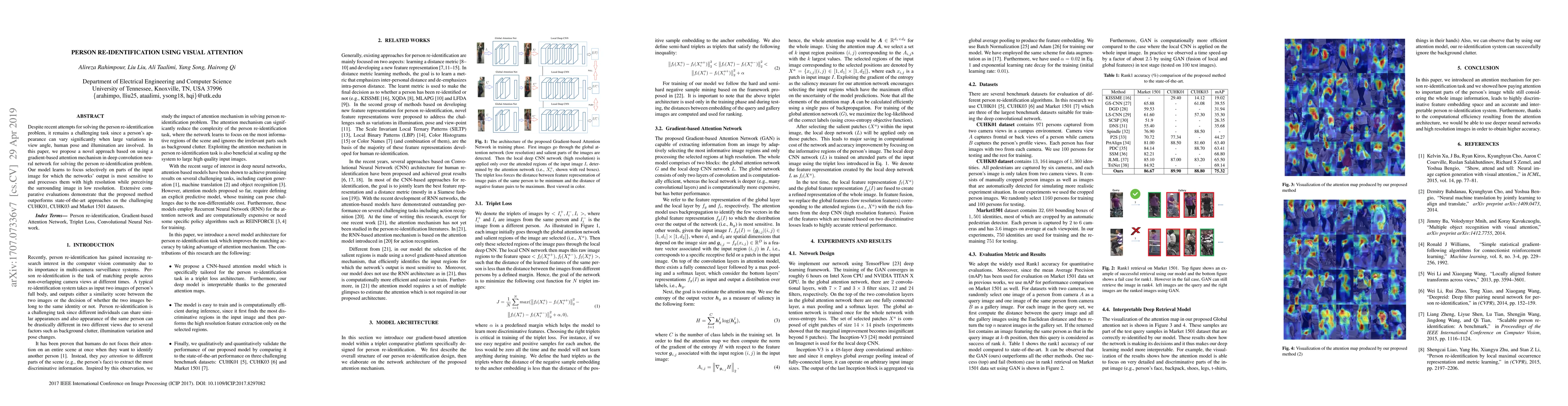 This paper proposes a gradient-based attention mechanism in deep convolutional neural networks to tackle the person re-identification problem, focusing selectively on critical image parts for high-resolution processing. The method outperforms existing state-of-the-art techniques on multiple datasets.