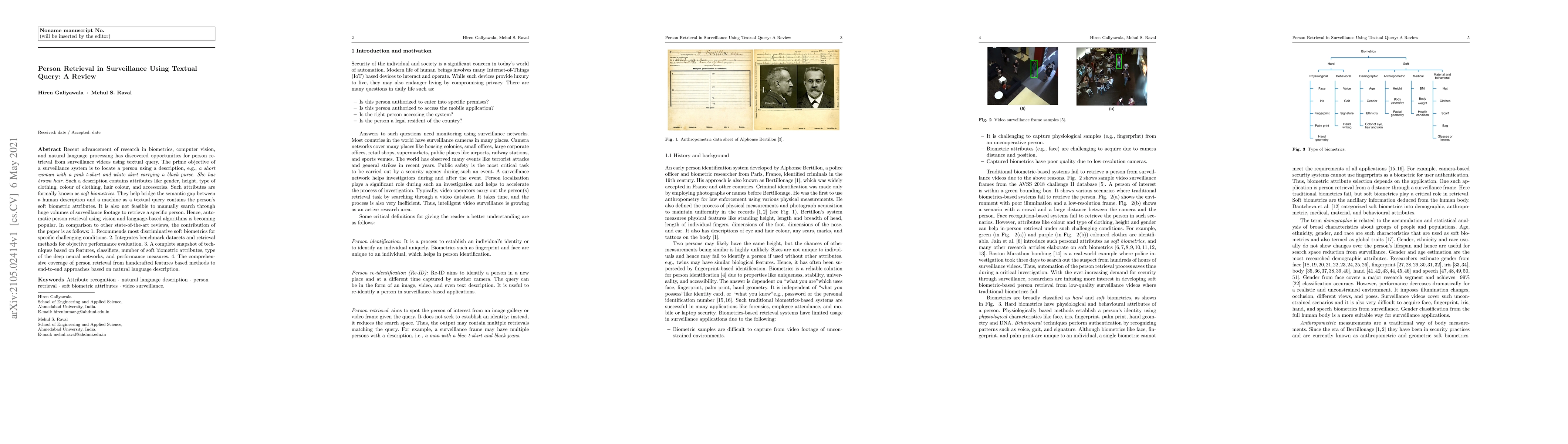 This paper reviews advancements in person retrieval from surveillance videos using textual queries, focusing on soft biometrics. It recommends discriminative attributes for challenging conditions, integrates benchmark datasets, and provides a comprehensive snapshot of techniques from handcrafted features to end-to-end deep learning methods.