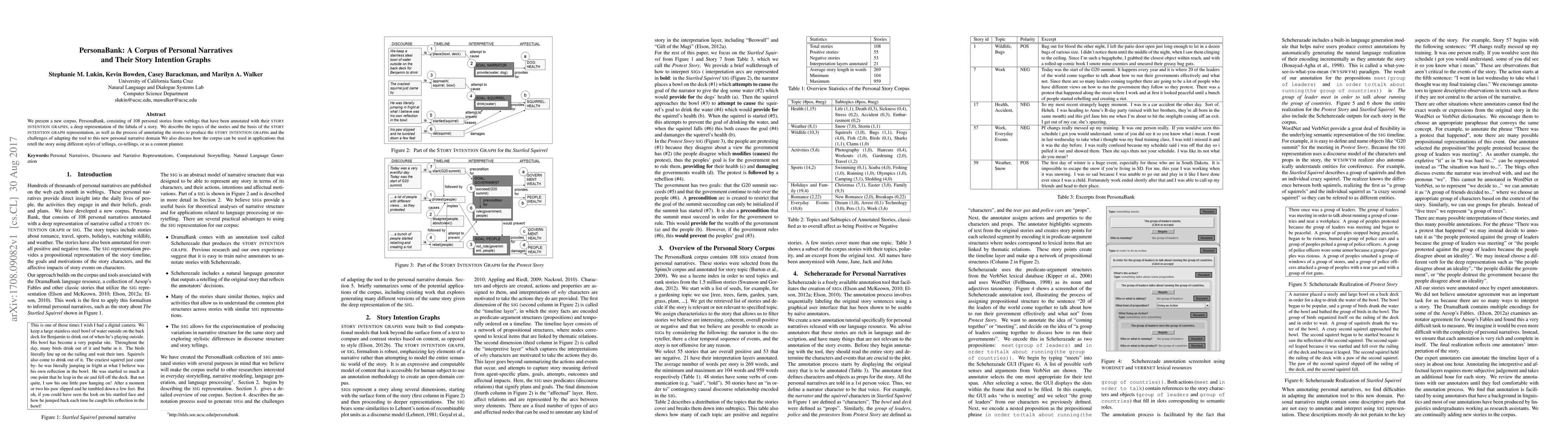 PersonaBank is a corpus of 108 annotated personal narratives from weblogs, each with a Story Intention Graph representing its fabula. The corpus aims to facilitate applications that retell stories in various styles.