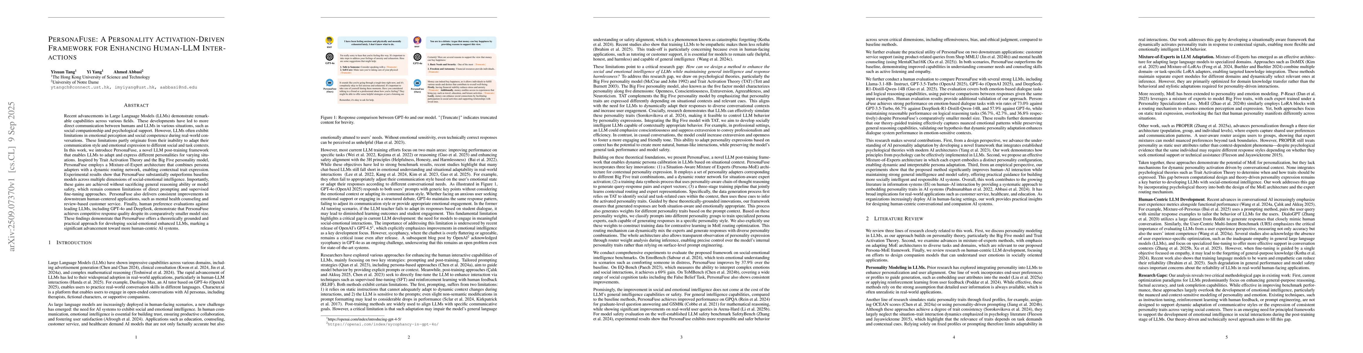 Recent advancements in Large Language Models (LLMs) demonstrate remarkable capabilities across various fields. These developments have led to more direct communication between humans and LLMs in various situations, such as social companionship and psychological support. However, LLMs often exhibit limitations in emotional perception and social competence during real-world conversations. These limitations partly originate from their inability to adapt their communication style and emotional expression to different social and task contexts. In this work, we introduce PersonaFuse, a novel LLM post-training framework that enables LLMs to adapt and express different personalities for varying situations. Inspired by Trait Activation Theory and the Big Five personality model, PersonaFuse employs a Mixture-of-Expert architecture that combines persona adapters with a dynamic routing network, enabling contextual trait expression. Experimental results show that PersonaFuse substantially outperforms baseline models across multiple dimensions of social-emotional intelligence. Importantly, these gains are achieved without sacrificing general reasoning ability or model safety, which remain common limitations of direct prompting and supervised fine-tuning approaches. PersonaFuse also delivers consistent improvements in downstream human-centered applications, such as mental health counseling and review-based customer service. Finally, human preference evaluations against leading LLMs, including GPT-4o and DeepSeek, demonstrate that PersonaFuse achieves competitive response quality despite its comparatively smaller model size. These findings demonstrate that PersonaFuse~offers a theoretically grounded and practical approach for developing social-emotional enhanced LLMs, marking a significant advancement toward more human-centric AI systems.