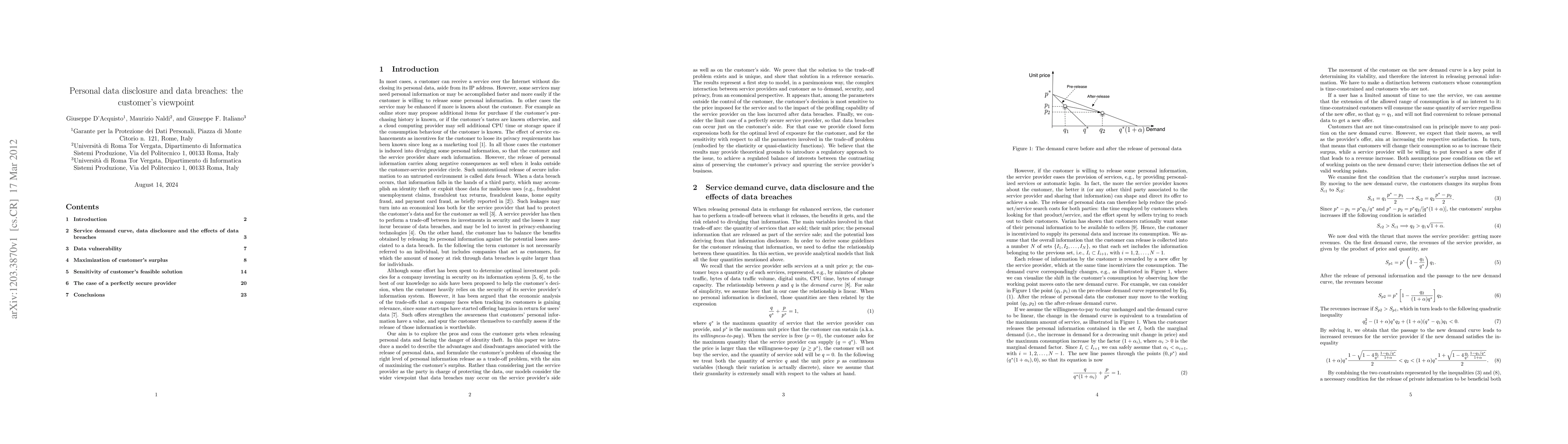 A study finds that customers weigh benefits of service against risks of identity theft when deciding how much personal data to share with providers, with price and privacy levels influencing their decisions.