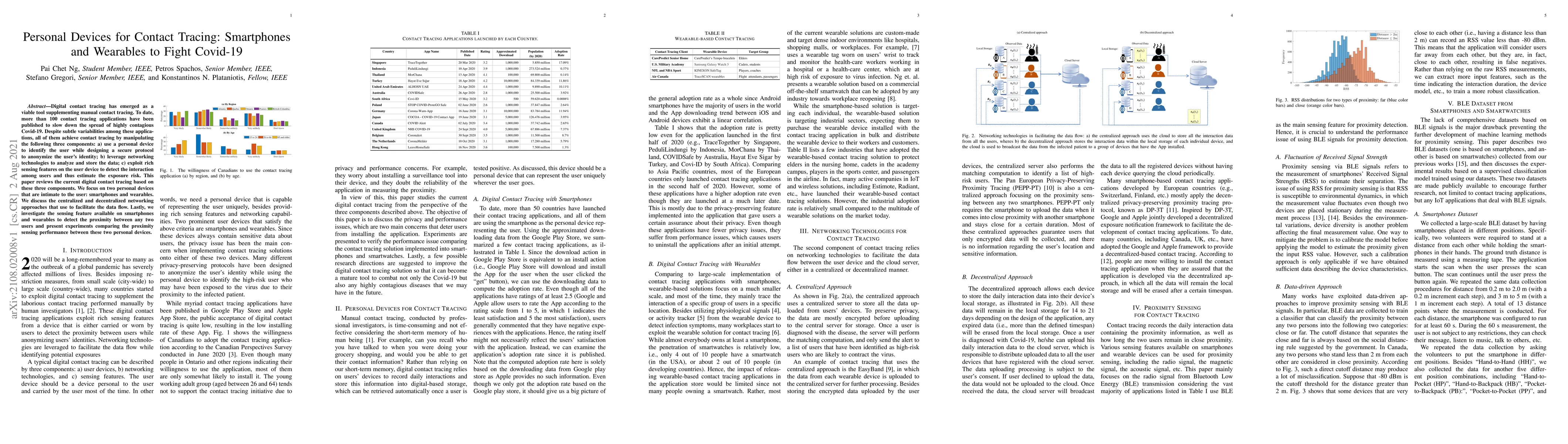 Digital contact tracing has emerged as a viable tool supplementing manual contact tracing. To date, more than 100 contact tracing applications have been published to slow down the spread of highly contagious Covid-19. Despite subtle variabilities among these applications, all of them achieve contact tracing by manipulating the following three components: a) use a personal device to identify the user while designing a secure protocol to anonymize the user's identity; b) leverage networking technologies to analyze and store the data; c) exploit rich sensing features on the user device to detect the interaction among users and thus estimate the exposure risk. This paper reviews the current digital contact tracing based on these three components. We focus on two personal devices that are intimate to the user: smartphones and wearables. We discuss the centralized and decentralized networking approaches that use to facilitate the data flow. Lastly, we investigate the sensing feature available on smartphones and wearables to detect the proximity between any two users and present experiments comparing the proximity sensing performance between these two personal devices.