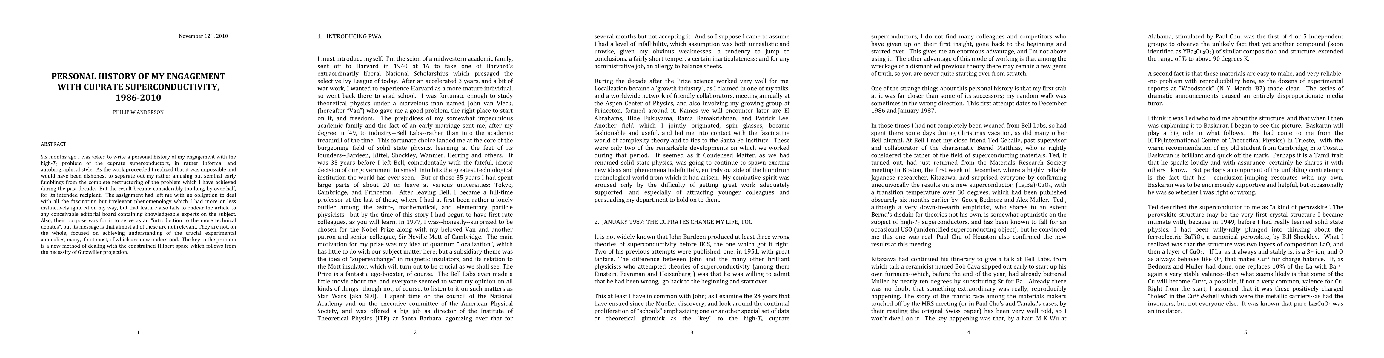 Six months ago I was asked to write a personal history of my engagement with the high-Tc problem of the cuprate superconductors, in rather informal and autobiographical style. As the work proceeded I realized that it was impossible and would have been dishonest to separate out my rather amusing but seminal early fumblings from the complete restructuring of the problem which I have achieved during the past decade. But the result became considerably too long, by over half, for its intended recipient. The assignment had left me with no obligation to deal with all the fascinating but irrelevant phenomenology which I had more or less instinctively ignored on my way, but that feature also fails to endear the article to any conceivable editorial board containing knowledgeable experts on the subject. Also, their purpose was for it to serve as a (quote) introduction to the more technical debates, but its message is that almost all of these are not relevant. They are not, on the whole, focused on achieving understanding of the crucial experimental anomalies, many, if not most, of which are now understood. The key to the problem is a new method of dealing with the constrained Hilbert space which follows from the necessity of Gutzwiller projection.