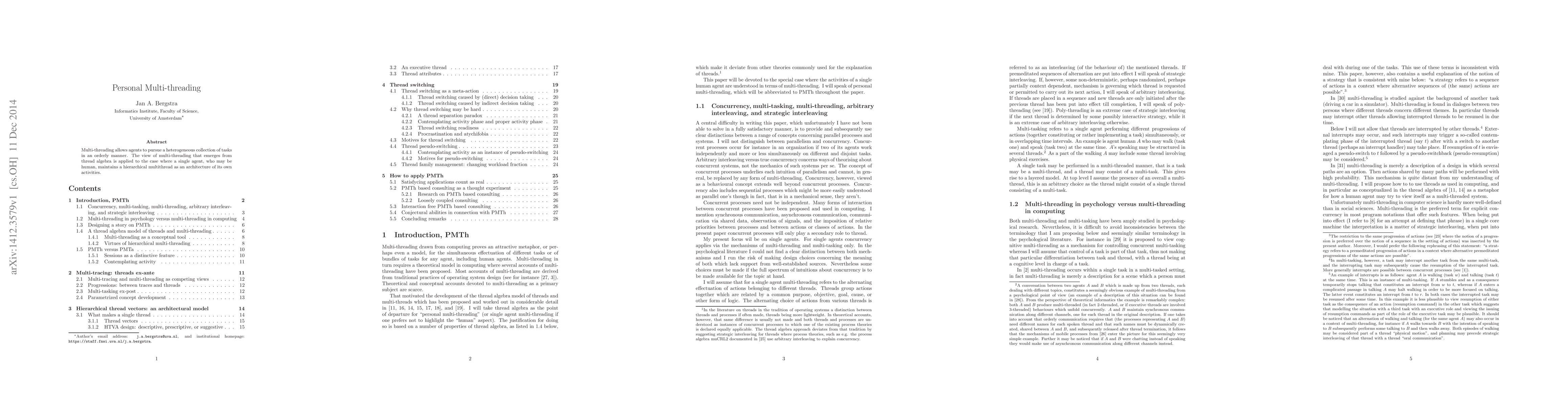 Summary: This paper explores how multi-threading can enable a single agent, potentially human, to manage a diverse set of tasks through a hierarchical structure, applying principles from thread algebra to organize and execute these tasks efficiently.