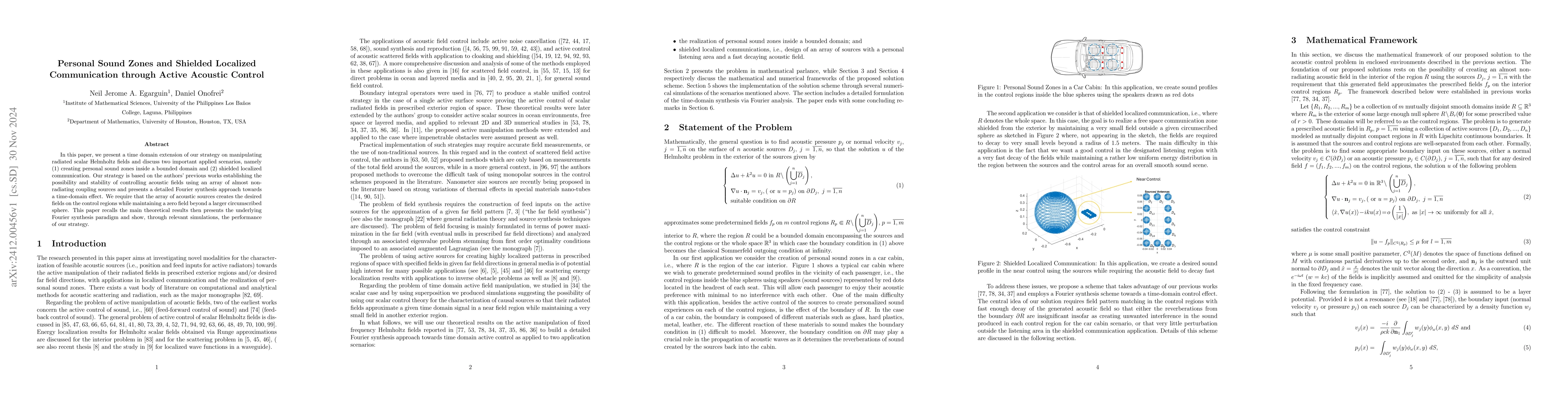 In this paper, we present a time domain extension of our strategy on manipulating radiated scalar Helmholtz fields and discuss two important applied scenarios, namely (1) creating personal sound zones inside a bounded domain and (2) shielded localized communication. Our strategy is based on the authors' previous works establishing the possibility and stability of controlling acoustic fields using an array of almost non-radiating coupling sources and presents a detailed Fourier synthesis approach towards a time-domain effect. We require that the array of acoustic sources creates the desired fields on the control regions while maintaining a zero field beyond a larger circumscribed sphere. This paper recalls the main theoretical results then presents the underlying Fourier synthesis paradigm and show, through relevant simulations, the performance of our strategy.