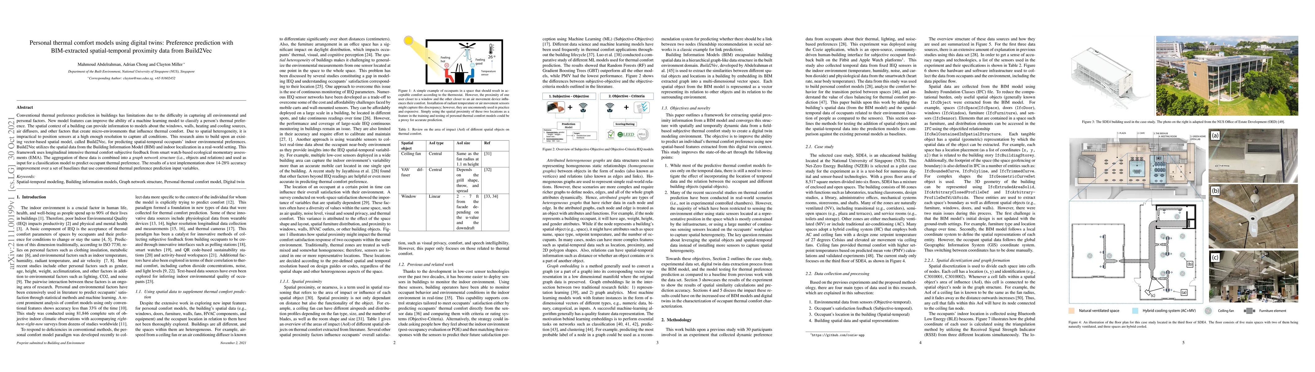 This paper proposes a novel thermal comfort prediction model using digital twins and Build2Vec, which leverages spatial data from Building Information Models (BIM) and real-time occupant feedback to improve accuracy. The model shows a 14-28% improvement over traditional methods by capturing spatial-temporal micro-environmental factors.