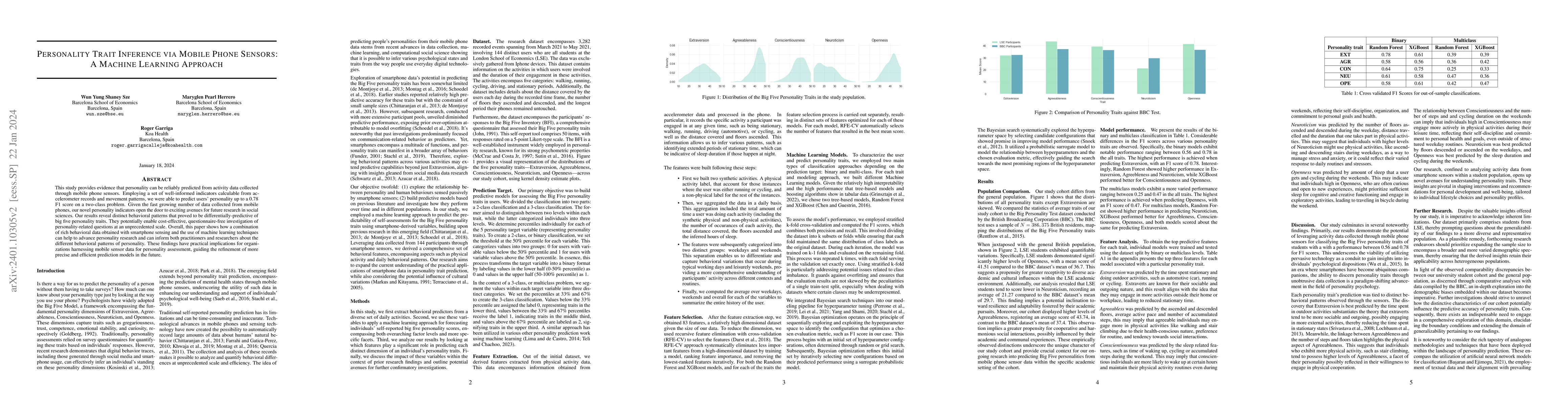 This study demonstrates that personality traits can be accurately predicted using data from mobile phone sensors, achieving a 0.78 F1 score. The research highlights distinct behavioral patterns linked to the Big Five personality traits, suggesting a cost-effective, questionnaire-free method for large-scale personality research.