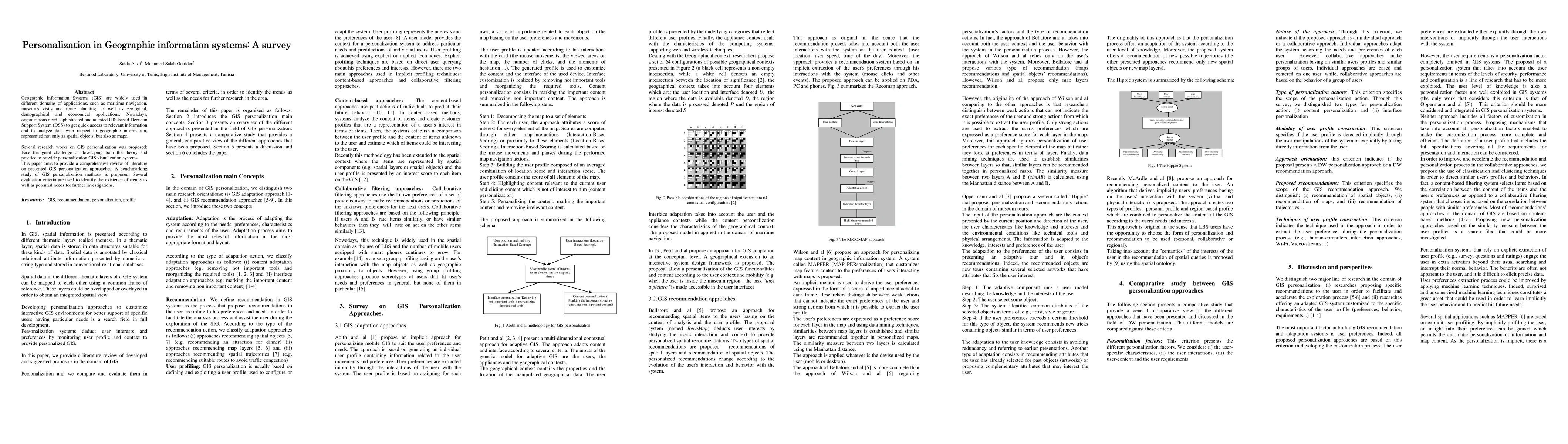 This paper reviews literature on GIS personalization approaches, aiming to benchmark existing methods and identify trends and gaps for future research. It evaluates various evaluation criteria to assess the effectiveness and potential of GIS-based Decision Support Systems.