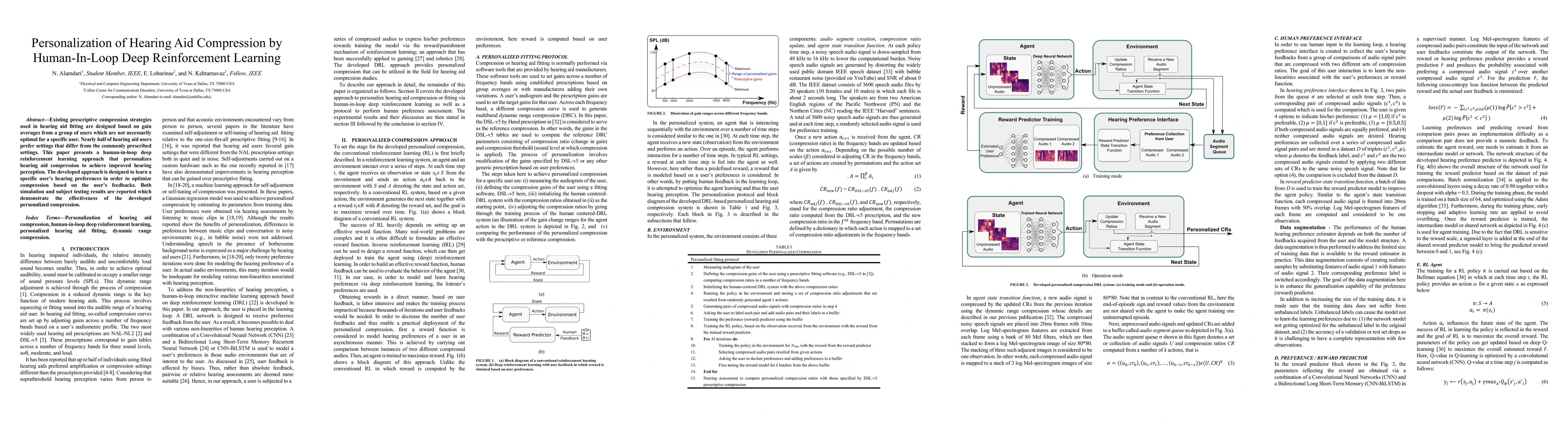 Existing prescriptive compression strategies used in hearing aid fitting are designed based on gain averages from a group of users which are not necessarily optimal for a specific user. Nearly half of hearing aid users prefer settings that differ from the commonly prescribed settings. This paper presents a human-in-loop deep reinforcement learning approach that personalizes hearing aid compression to achieve improved hearing perception. The developed approach is designed to learn a specific user's hearing preferences in order to optimize compression based on the user's feedbacks. Both simulation and subject testing results are reported which demonstrate the effectiveness of the developed personalized compression.