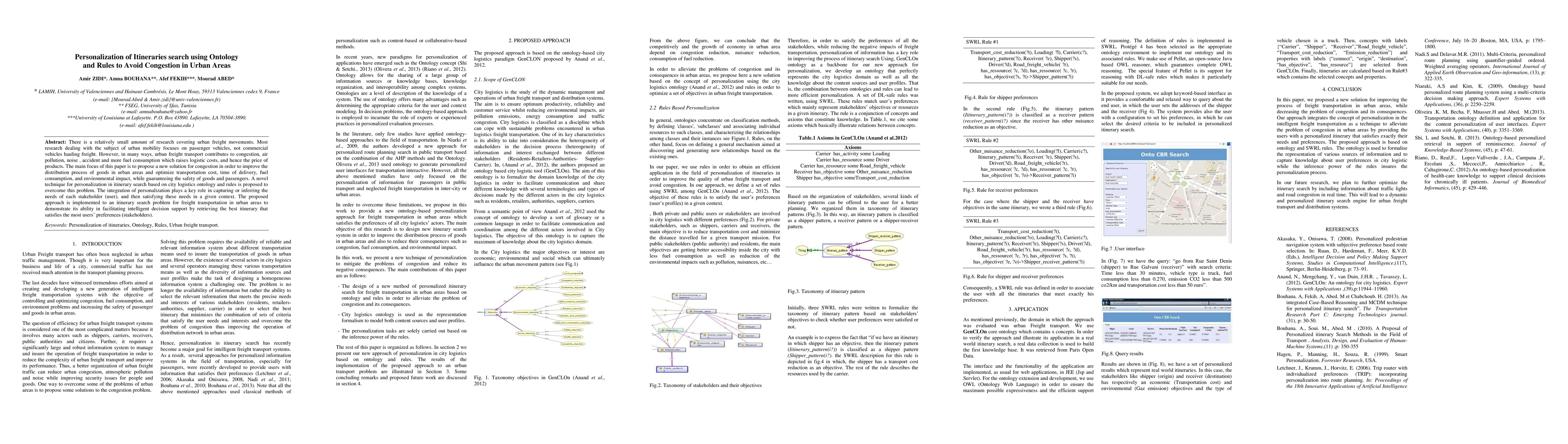 This paper proposes a new method for personalizing urban freight itineraries using city logistics ontology and rules to mitigate congestion and optimize delivery time, fuel consumption, and environmental impact. The approach aims to provide intelligent decision support by finding itineraries that best meet stakeholder preferences.