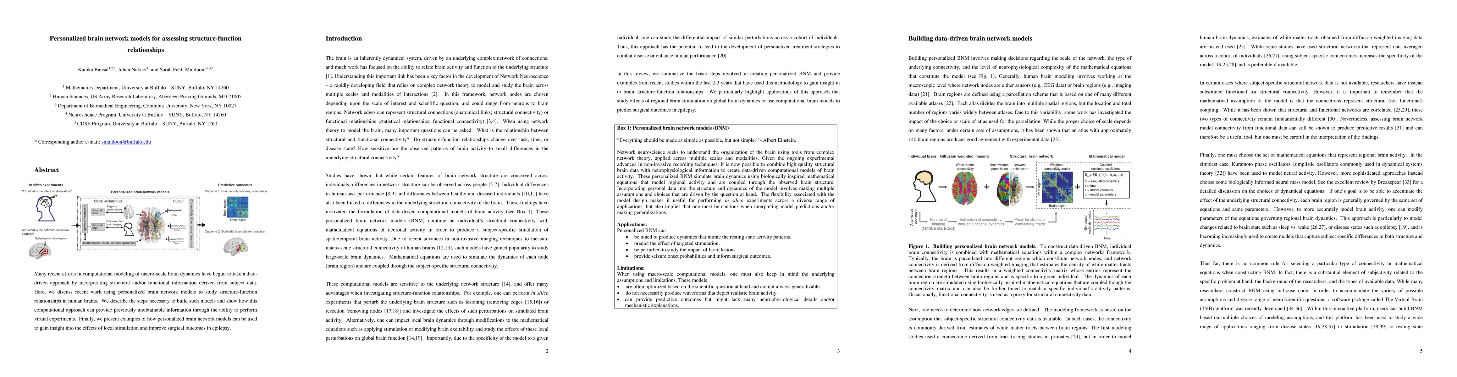 This paper discusses the development of personalized brain network models to explore structure-function relationships in human brains, highlighting the steps to build these models and their potential to provide new insights through virtual experiments, particularly in understanding the effects of local stimulation and enhancing surgical outcomes for epilepsy.