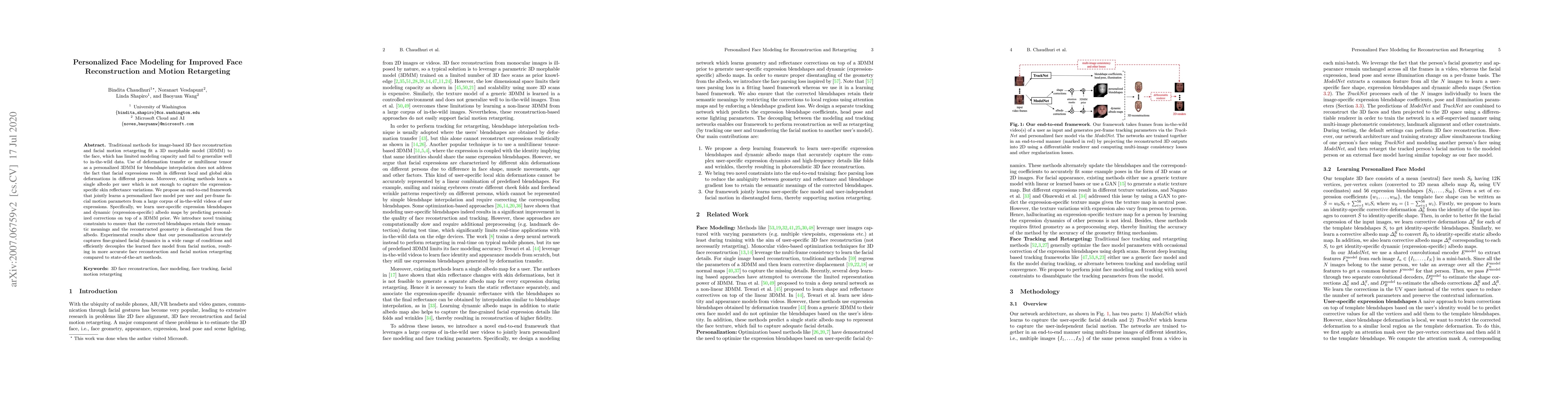 This paper proposes an end-to-end framework for personalized 3D face modeling and motion retargeting, learning user-specific expression blendshapes and dynamic albedo maps from in-the-wild videos. The method achieves more accurate face reconstruction and motion retargeting by decoupling the face model from facial motion.