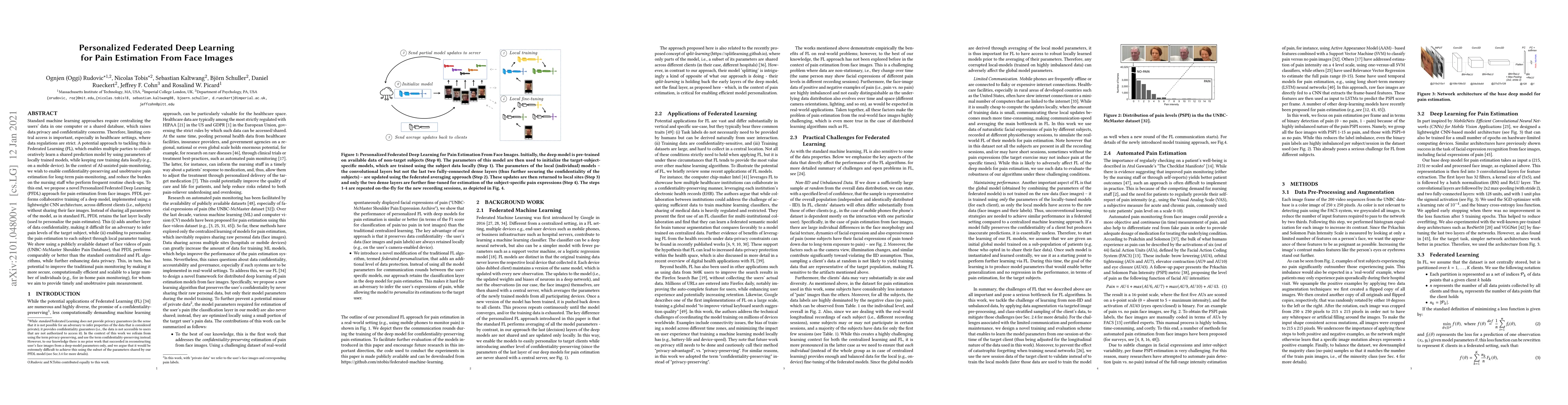 This paper proposes a Personalized Federated Deep Learning (PFDL) approach for pain estimation from face images, aiming to enhance data privacy in healthcare settings. PFDL enables collaborative training without sharing raw data, retaining only the last layer locally for personalization, thus improving confidentiality and efficiency for long-term pain monitoring.