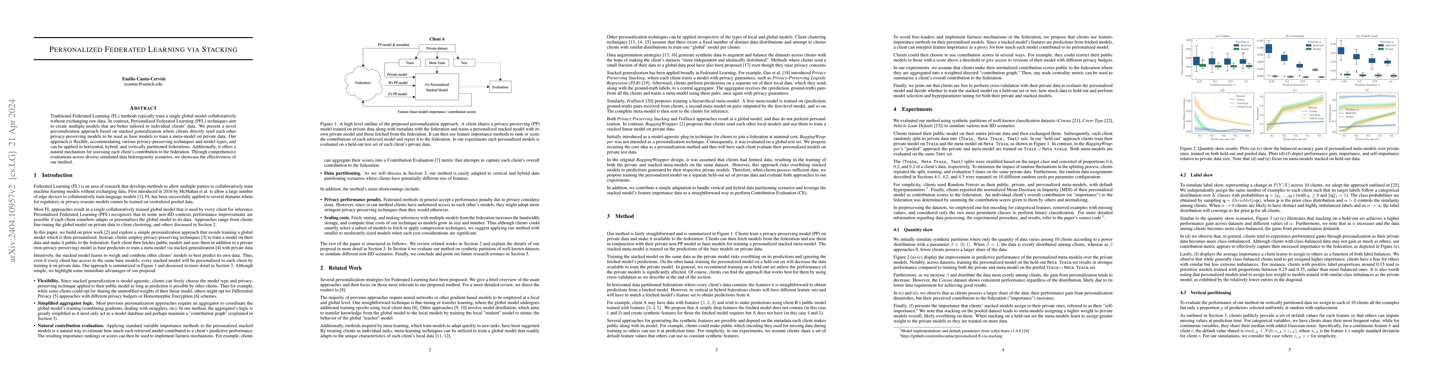 This paper introduces a novel Personalized Federated Learning method based on stacked generalization, where clients share privacy-preserving models to train a meta-model on their private data. The approach is versatile and effective across different federated learning settings, demonstrated through evaluations in various data heterogeneity scenarios.
