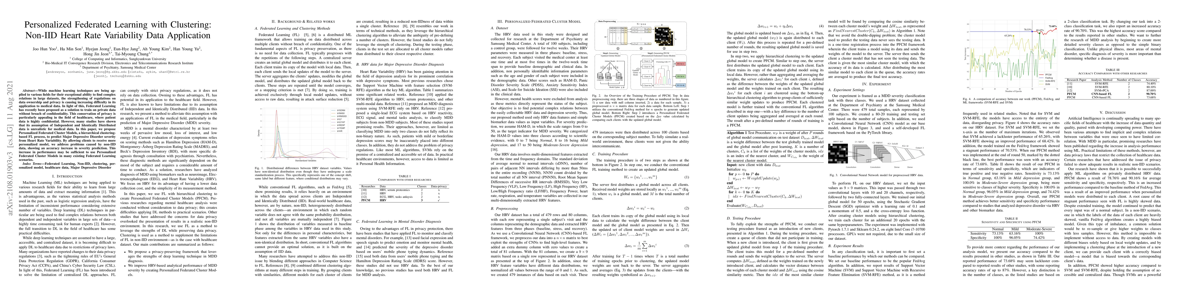 While machine learning techniques are being applied to various fields for their exceptional ability to find complex relations in large datasets, the strengthening of regulations on data ownership and privacy is causing increasing difficulty in its application to medical data. In light of this, Federated Learning has recently been proposed as a solution to train on private data without breach of confidentiality. This conservation of privacy is particularly appealing in the field of healthcare, where patient data is highly confidential. However, many studies have shown that its assumption of Independent and Identically Distributed data is unrealistic for medical data. In this paper, we propose Personalized Federated Cluster Models, a hierarchical clustering-based FL process, to predict Major Depressive Disorder severity from Heart Rate Variability. By allowing clients to receive more personalized model, we address problems caused by non-IID data, showing an accuracy increase in severity prediction. This increase in performance may be sufficient to use Personalized Federated Cluster Models in many existing Federated Learning scenarios.