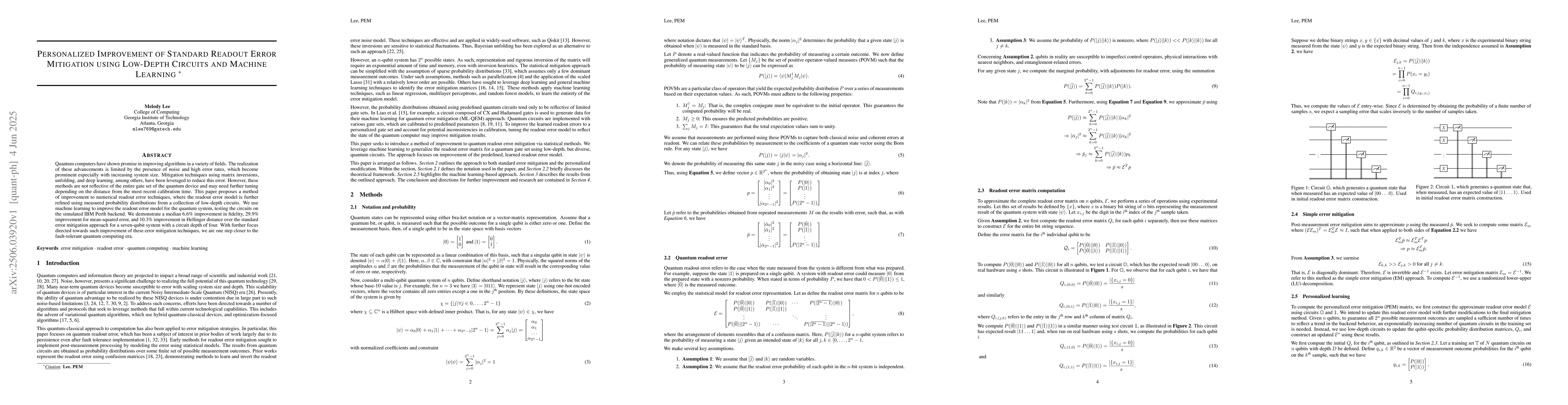 Researchers improved quantum readout error mitigation using low-depth circuits and machine learning, achieving a 6.6% improvement in fidelity and 29.9% reduction in mean-squared error.