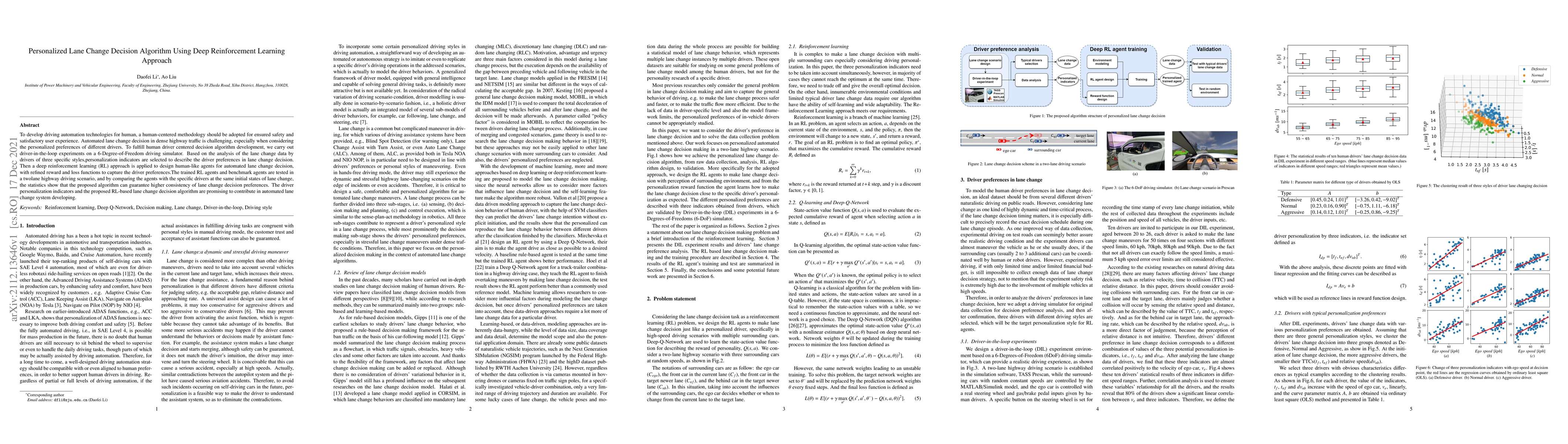 This paper develops a personalized lane change decision algorithm using deep reinforcement learning, focusing on human-centered safety and user experience. The study employs driver-in-the-loop experiments to analyze lane change data, selects personalization indicators, and trains RL agents to mimic driver preferences, demonstrating higher consistency in lane change decisions compared to benchmark agents.