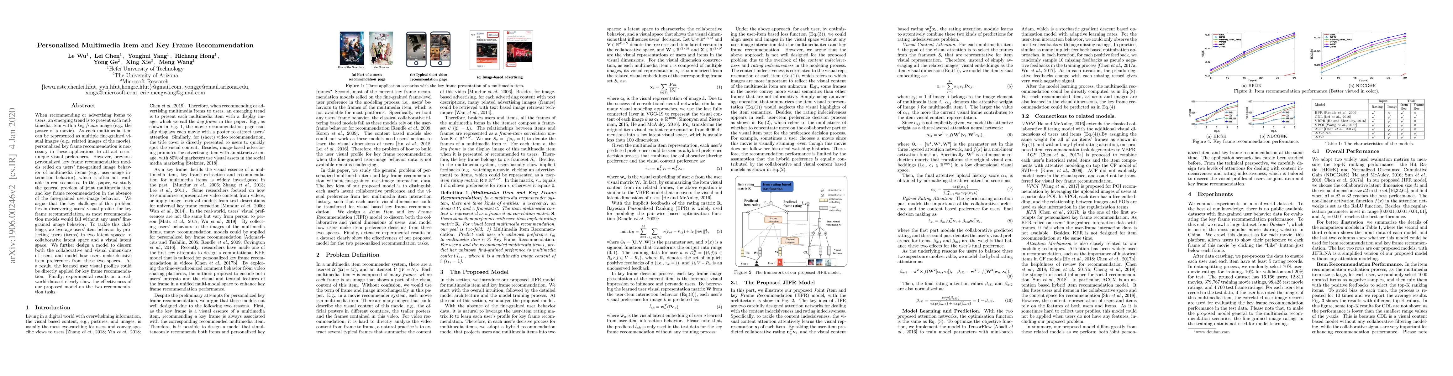 This paper proposes a model for personalized multimedia item and key frame recommendation without relying on fine-grained user-image interaction data. It leverages users' item behavior to project users and items into collaborative and visual latent spaces, enabling the discovery of user visual profiles for effective key frame recommendation.