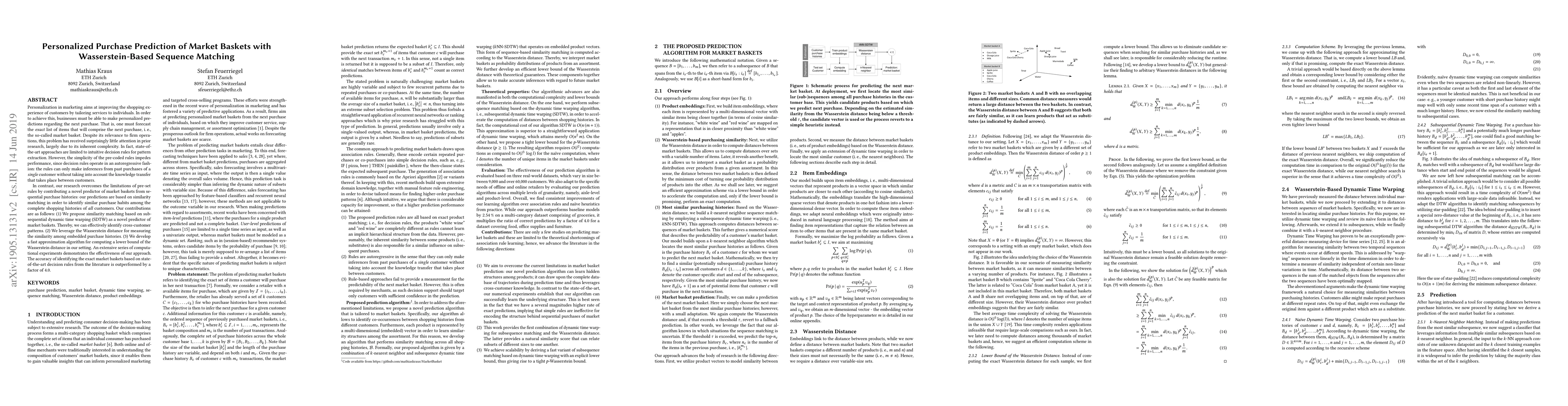 Personalization in marketing aims at improving the shopping experience of customers by tailoring services to individuals. In order to achieve this, businesses must be able to make personalized predictions regarding the next purchase. That is, one must forecast the exact list of items that will comprise the next purchase, i.e., the so-called market basket. Despite its relevance to firm operations, this problem has received surprisingly little attention in prior research, largely due to its inherent complexity. In fact, state-of-the-art approaches are limited to intuitive decision rules for pattern extraction. However, the simplicity of the pre-coded rules impedes performance, since decision rules operate in an autoregressive fashion: the rules can only make inferences from past purchases of a single customer without taking into account the knowledge transfer that takes place between customers. In contrast, our research overcomes the limitations of pre-set rules by contributing a novel predictor of market baskets from sequential purchase histories: our predictions are based on similarity matching in order to identify similar purchase habits among the complete shopping histories of all customers. Our contributions are as follows: (1) We propose similarity matching based on subsequential dynamic time warping (SDTW) as a novel predictor of market baskets. Thereby, we can effectively identify cross-customer patterns. (2) We leverage the Wasserstein distance for measuring the similarity among embedded purchase histories. (3) We develop a fast approximation algorithm for computing a lower bound of the Wasserstein distance in our setting. An extensive series of computational experiments demonstrates the effectiveness of our approach. The accuracy of identifying the exact market baskets based on state-of-the-art decision rules from the literature is outperformed by a factor of 4.0.