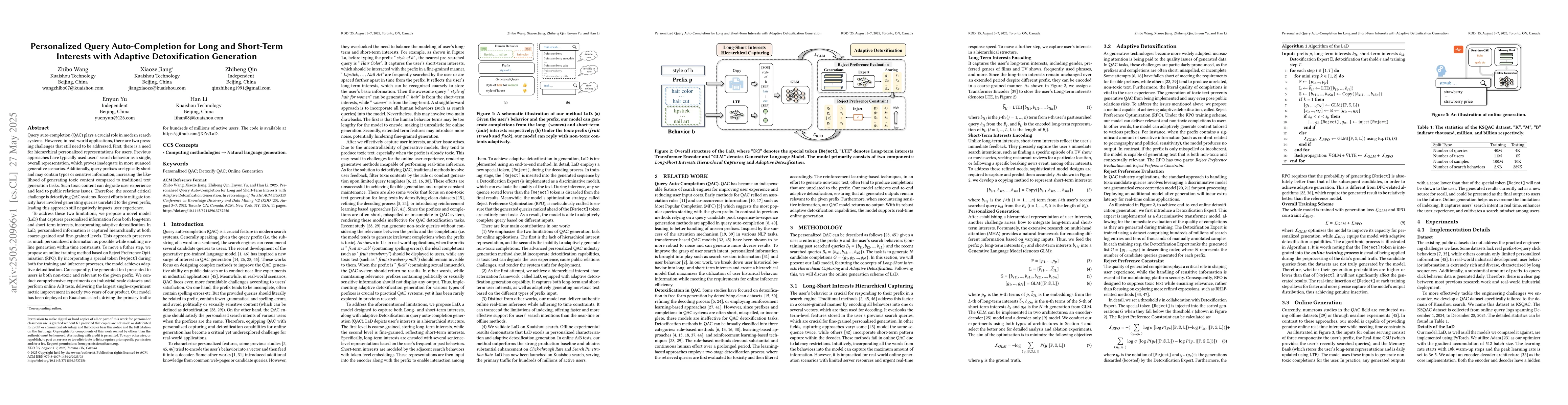 A new model (LaD) improves query auto-completion with personalized long-term and short-term interests and adaptive detoxification to prevent toxic content, achieving the largest single-experiment metric improvement in nearly two years.