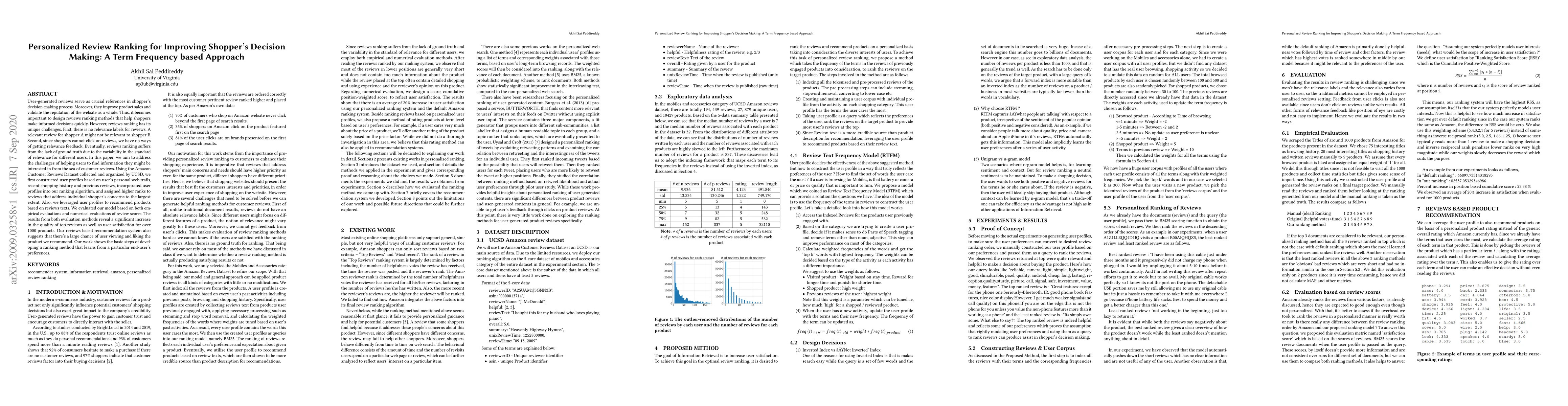 A new review ranking method uses personalized profiles to increase user satisfaction and accuracy for over 1000 products, suggesting a high chance of users viewing and liking recommended products.