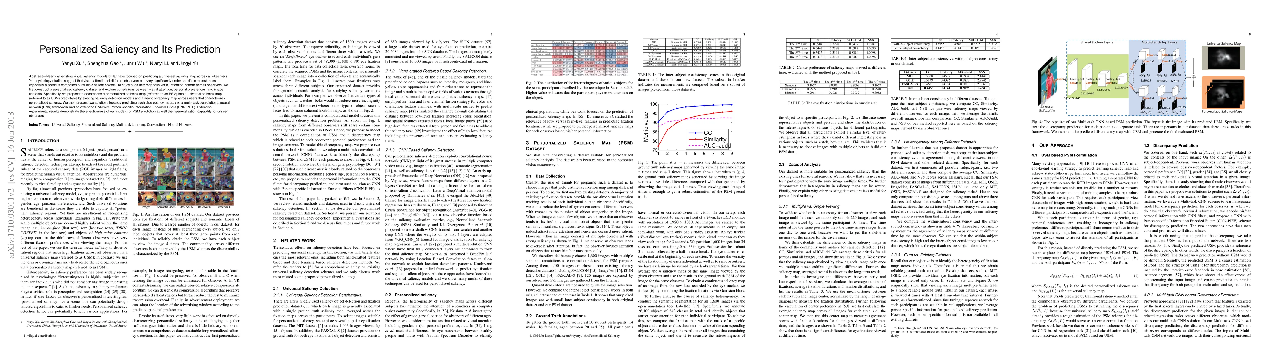 Nearly all existing visual saliency models by far have focused on predicting a universal saliency map across all observers. Yet psychology studies suggest that visual attention of different observers can vary significantly under specific circumstances, especially a scene is composed of multiple salient objects. To study such heterogenous visual attention pattern across observers, we first construct a personalized saliency dataset and explore correlations between visual attention, personal preferences, and image contents. Specifically, we propose to decompose a personalized saliency map (referred to as PSM) into a universal saliency map (referred to as USM) predictable by existing saliency detection models and a new discrepancy map across users that characterizes personalized saliency. We then present two solutions towards predicting such discrepancy maps, i.e., a multi-task convolutional neural network (CNN) framework and an extended CNN with Person-specific Information Encoded Filters (CNN-PIEF). Extensive experimental results demonstrate the effectiveness of our models for PSM prediction as well their generalization capability for unseen observers.