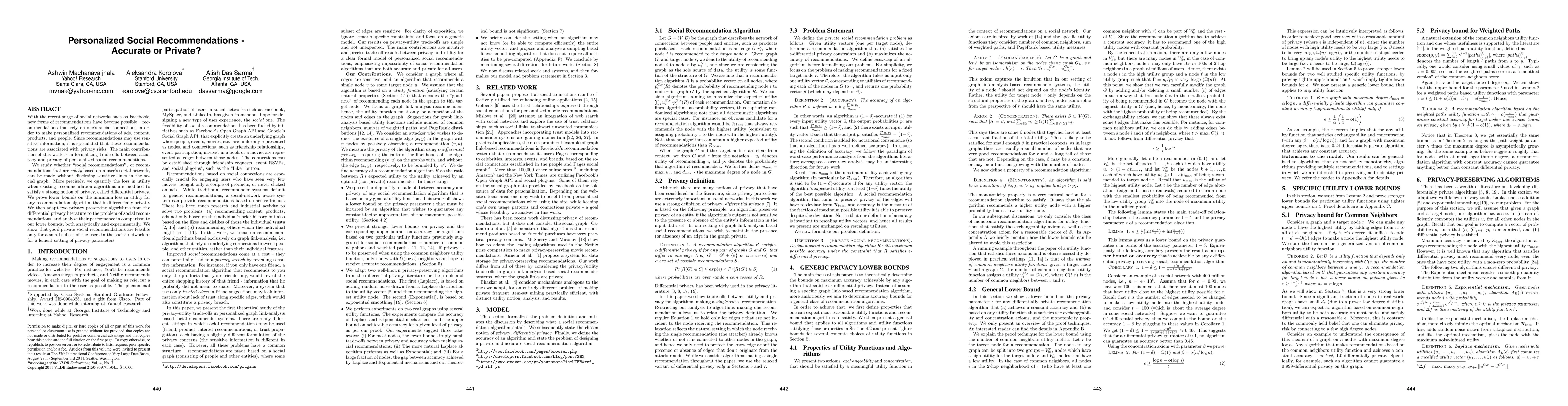 This paper investigates the trade-off between the accuracy and privacy of personalized social recommendations, proving lower bounds on utility loss when employing differential privacy. It demonstrates that achieving good privacy-preserving recommendations is feasible for only a small subset of users or under lenient privacy settings.