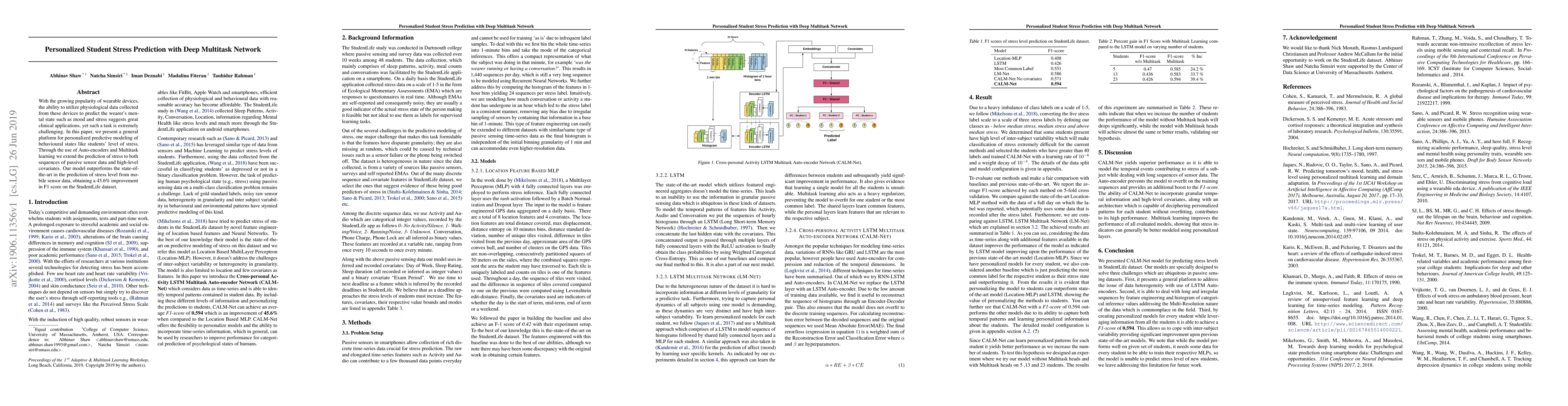 With the growing popularity of wearable devices, the ability to utilize physiological data collected from these devices to predict the wearer's mental state such as mood and stress suggests great clinical applications, yet such a task is extremely challenging. In this paper, we present a general platform for personalized predictive modeling of behavioural states like students' level of stress. Through the use of Auto-encoders and Multitask learning we extend the prediction of stress to both sequences of passive sensor data and high-level covariates. Our model outperforms the state-of-the-art in the prediction of stress level from mobile sensor data, obtaining a 45.6 % improvement in F1 score on the StudentLife dataset.