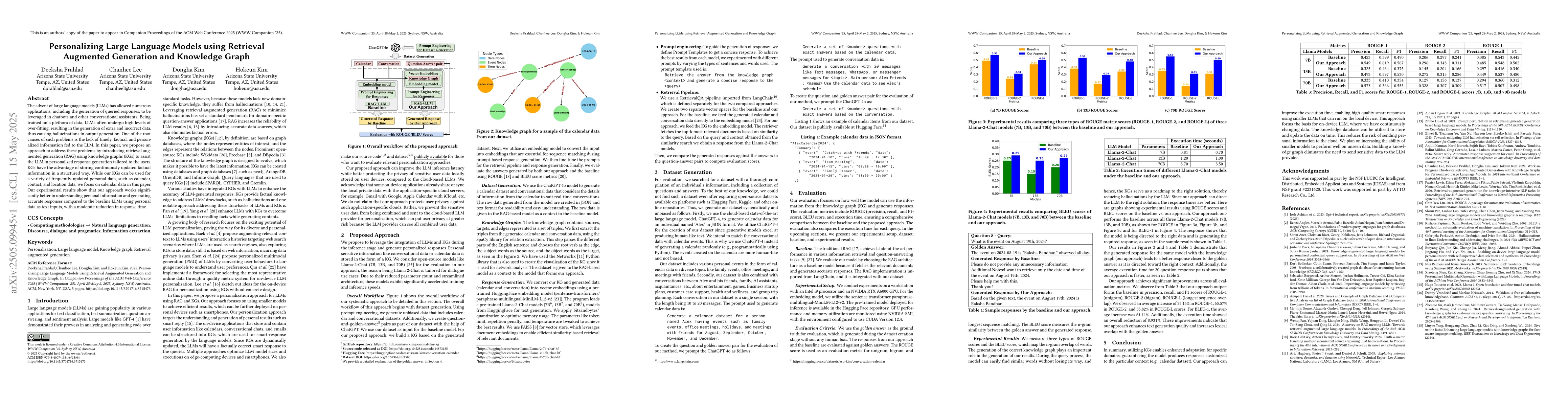 This work is novel in its application of RAG and KGs specifically for personalizing LLMs, focusing on calendar data for continuous updates, and demonstrating enhanced performance in understanding personal information and generating accurate responses.