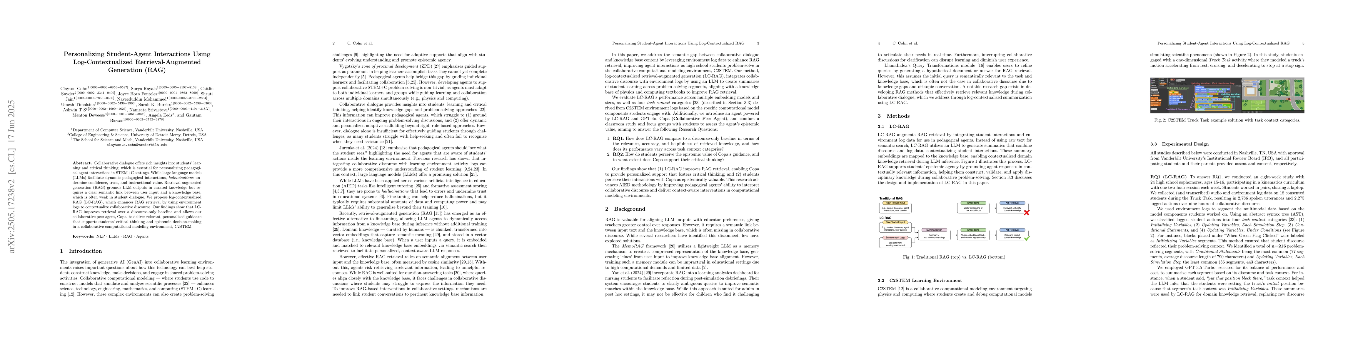 Researchers developed a new method to personalize student-agent interactions in STEM fields, using log-contextualized retrieval augmented generation (LC-RAG) to improve the accuracy of personalized guidance.