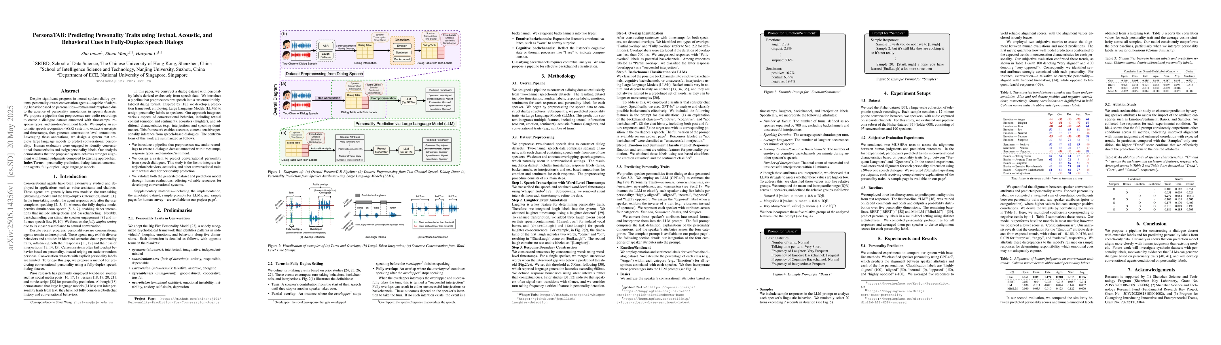 Researchers propose a system to predict personality traits from speech dialogues using audio transcripts, timestamps, and emotion/sentiment labels, achieving stronger alignment with human judgments than existing approaches.