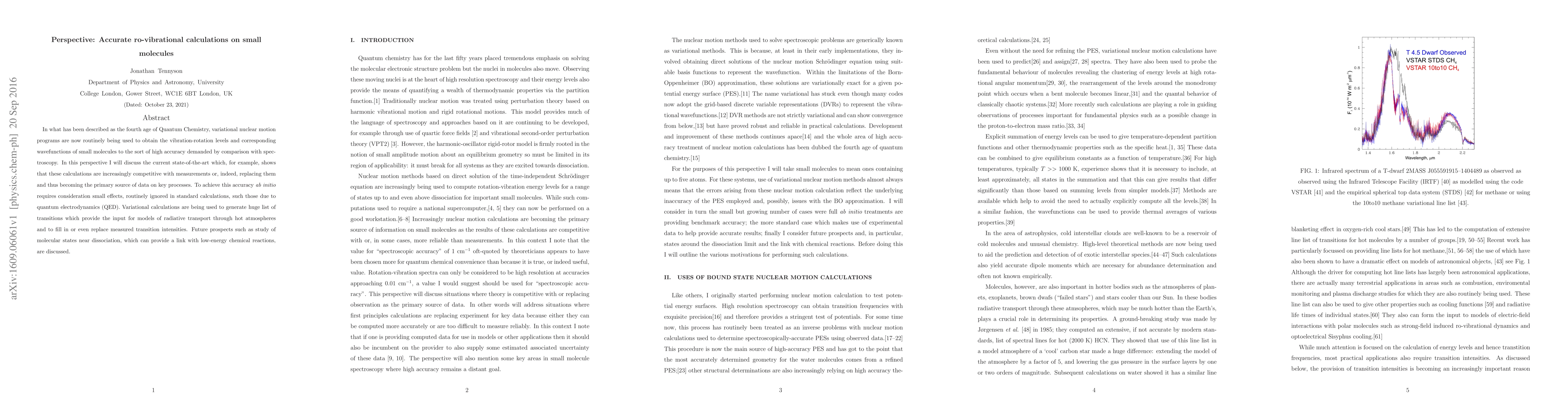This paper discusses the advancements in variational nuclear motion programs for achieving high-accuracy ro-vibrational calculations on small molecules, which now rival experimental measurements. It highlights the inclusion of small effects like quantum electrodynamics (QED) to improve accuracy and the potential for these calculations to replace experimental data in radiative transport models.