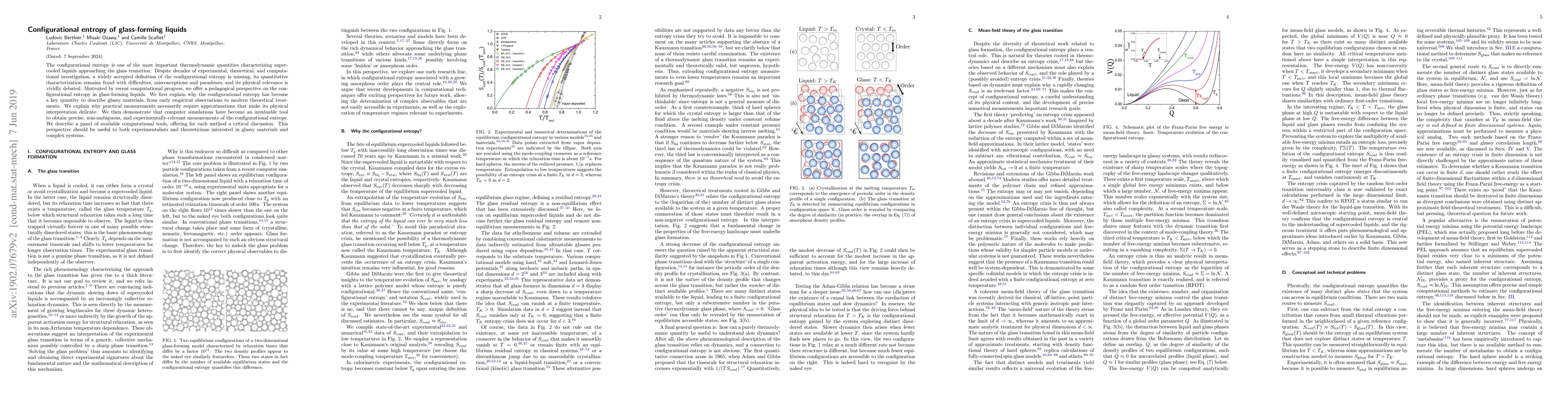 This paper provides a comprehensive overview of the configurational entropy in glass-forming liquids, highlighting its importance and the challenges associated with its precise characterization. It emphasizes the use of computational simulations to overcome measurement difficulties and offers a critical evaluation of various tools available for studying this key quantity in glassy materials.