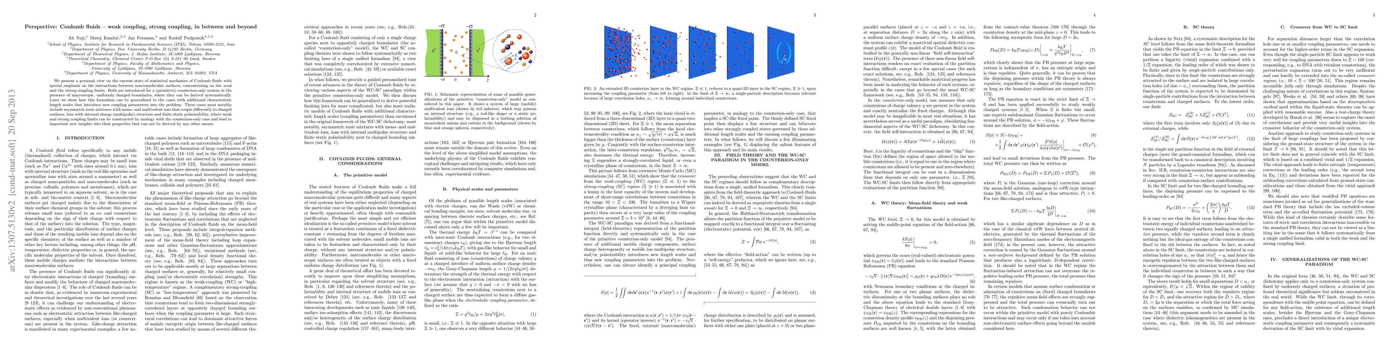 We present a personal view on the current state of statistical mechanics of Coulomb fluids with special emphasis on the interactions between macromolecular surfaces, concentrating on the weak and the strong coupling limits. Both are introduced for a (primitive) counterion-only system in the presence of macroscopic, uniformly charged boundaries, where they can be derived systematically. Later we show how this formalism can be generalized to the cases with additional characteristic length scales that introduce new coupling parameters into the problem. These cases most notably include asymmetric ionic mixtures with mono- and multivalent ions that couple differently to charged surfaces, ions with internal charge (multipolar) structure and finite static polarizability, where weak and strong coupling limits can be constructed by analogy with the counterion-only case and lead to important new insights into their properties that can not be derived by any other means.