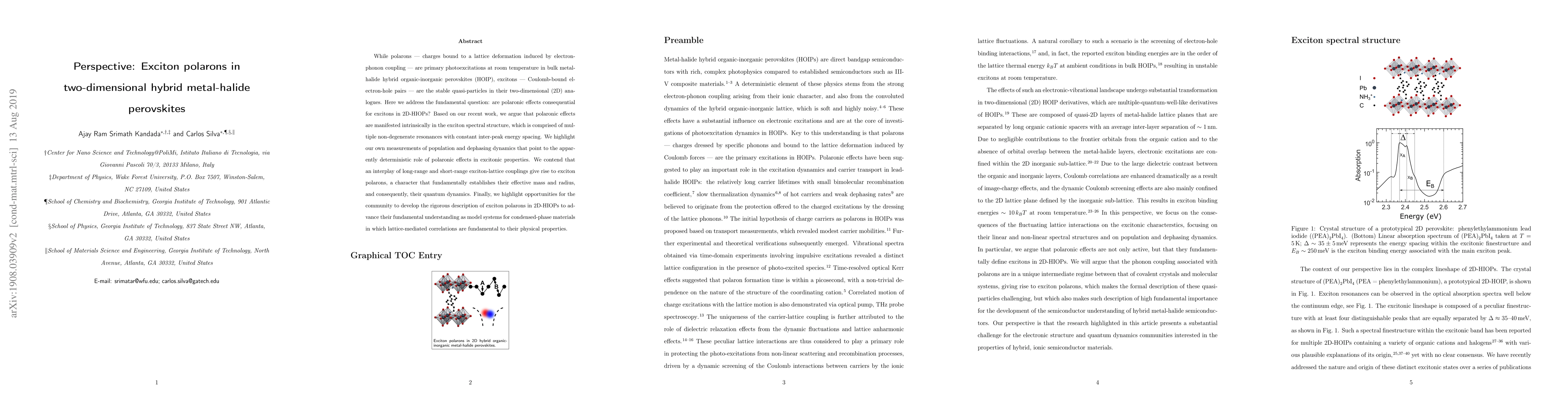 This paper investigates whether polaronic effects, typically seen in bulk perovskites, also apply to excitons in two-dimensional hybrid metal-halide perovskites. The authors argue that polaronic effects are intrinsic to the exciton spectral structure, influencing the effective mass and quantum dynamics of excitons through an interplay of lattice couplings.