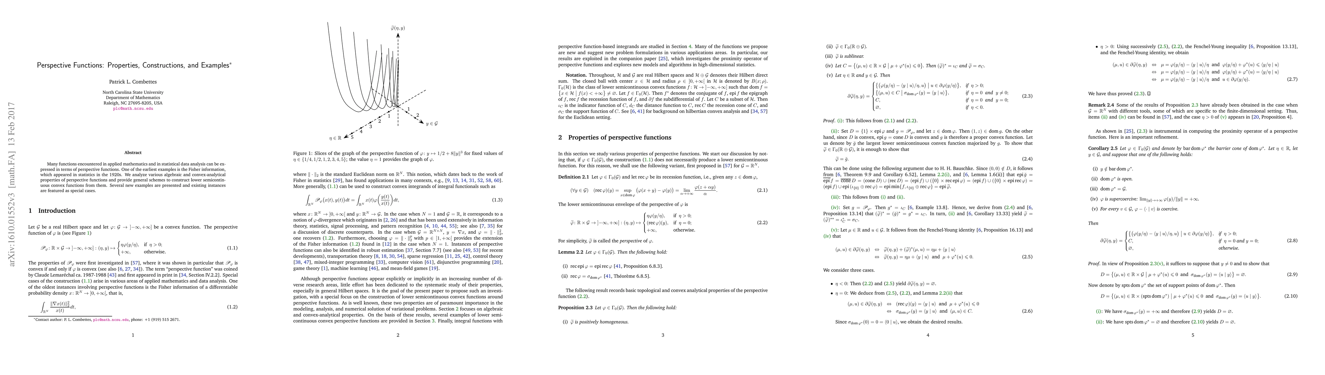 Many functions encountered in applied mathematics and in statistical data analysis can be expressed in terms of perspective functions. One of the earliest examples is the Fisher information, which appeared in statistics in the 1920s. We analyze various algebraic and convex-analytical properties of perspective functions and provide general schemes to construct lower semicontinuous convex functions from them. Several new examples are presented and existing instances are featured as special cases.