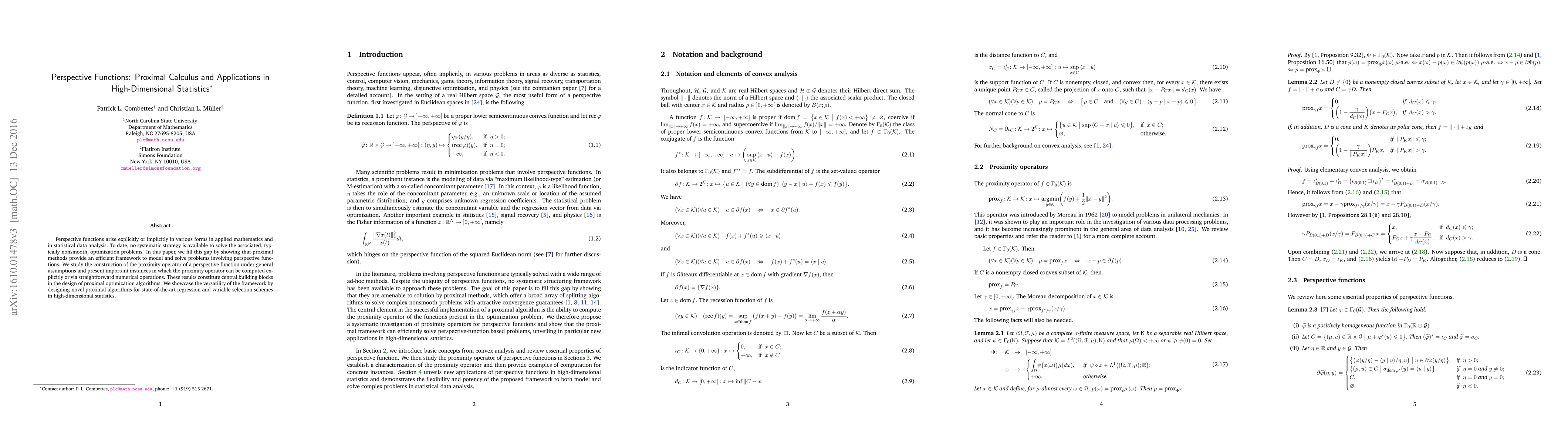 This paper introduces a framework using proximal calculus to efficiently solve optimization problems involving perspective functions, with applications in high-dimensional statistics.