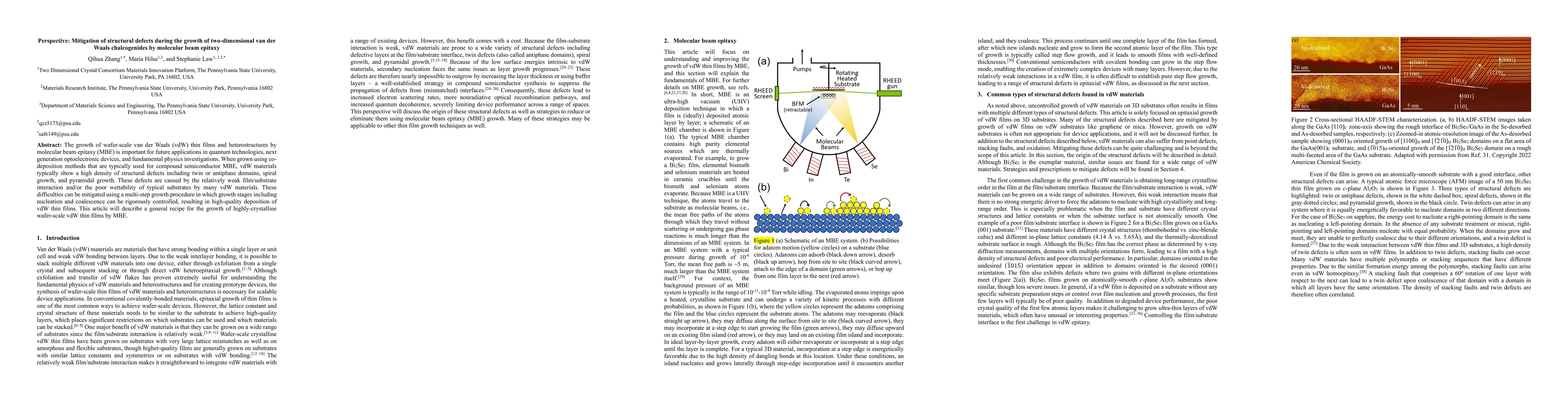 The growth of wafer-scale van der Waals (vdW) thin films and heterostructures by molecular beam epitaxy (MBE) is important for future applications in quantum technologies, next generation optoelectronic devices, and fundamental physics investigations. When grown using co-deposition methods that are typically used for compound semiconductor MBE, vdW materials typically show a high density of structural defects including twin or antiphase domains, spiral growth, and pyramidal growth. These defects are caused by the relatively weak film/substrate interaction and/or the poor wettability of typical substrates by many vdW materials. These difficulties can be mitigated using a multi-step growth procedure in which growth stages including nucleation and coalescence can be rigorously controlled, resulting in high-quality deposition of vdW thin films. This article will describe a general recipe for the growth of highly-crystalline wafer-scale vdW thin films by MBE.
