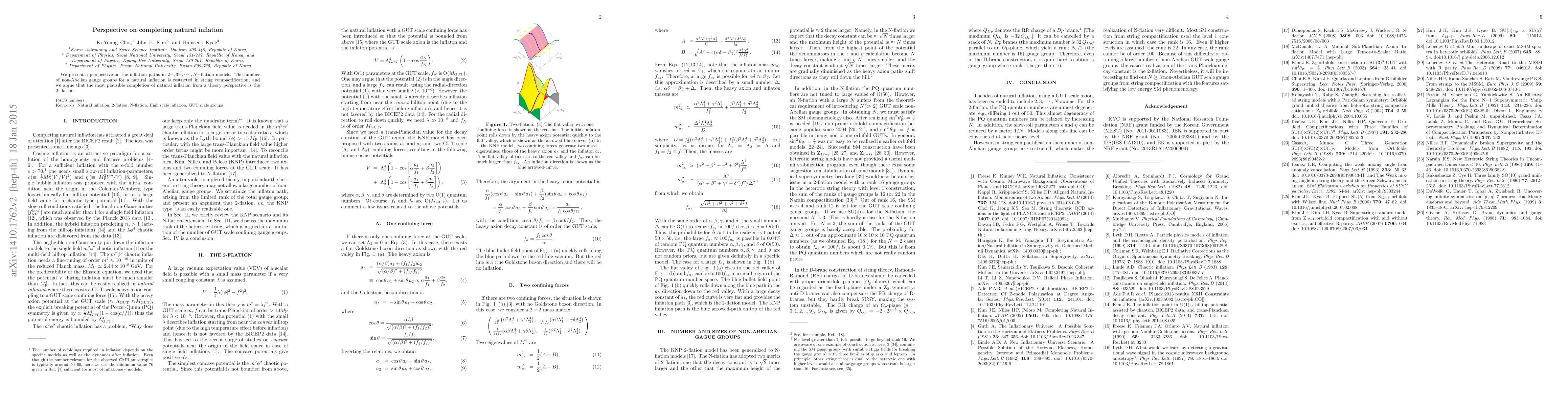 We present a perspective on the inflation paths in 2-, 3-,,, N-flation models based on the ultraviolet completion in heterotic string theory, where a number of grand unification scale axions are used. The number of non-Abelian gauge groups for a natural inflation is restricted in string compactification, and we argue that the most plausible completion of natural inflation from a theory perspective is the 2-flation.