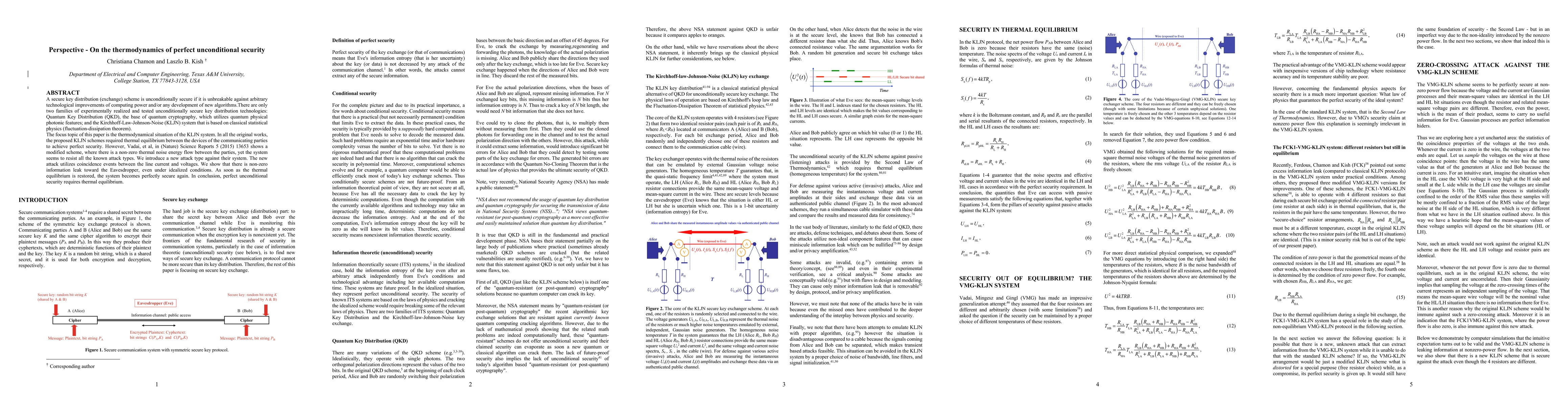 A secure key distribution (exchange) scheme is unconditionally secure if it is unbreakable against arbitrary technological improvements of computing power and/or any development of new algorithms. There are only two families of experimentally realized and tested unconditionally secure key distribution technologies: Quantum Key Distribution (QKD), the base of quantum cryptography, which utilizes quantum physical photonic features; and the Kirchhoff-Law-Johnson-Noise (KLJN) system that is based on classical statistical physics (fluctuation-dissipation theorem). The focus topic of this paper is the thermodynamical situation of the KLJN system. In all the original works, the proposed KLJN schemes required thermal equilibrium between the devices of the communicating parties to achieve perfect security. However, Vadai, et al, in (Nature) Science Reports 5 (2015) 13653 shows a modified scheme, where there is a non-zero thermal noise energy flow between the parties, yet the system seems to resist all the known attack types. We introduce a new attack type against their system. The new attack utilizes coincidence events between the line current and voltages. We show that there is non-zero information leak toward the Eavesdropper, even under idealized conditions. As soon as the thermal equilibrium is restored, the system becomes perfectly secure again. In conclusion, perfect unconditional security requires thermal equilibrium.