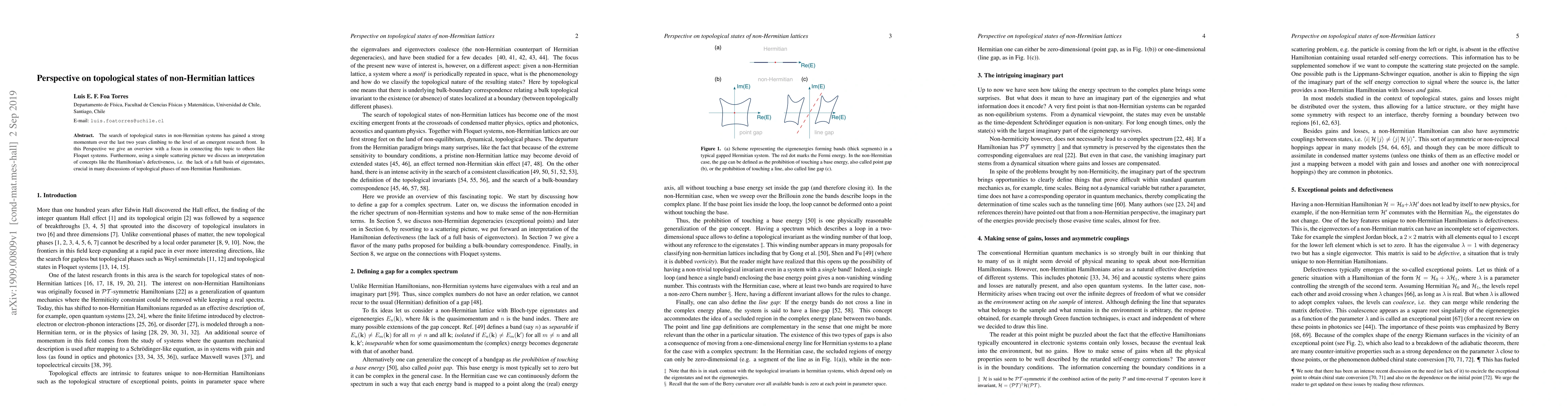 Researchers discuss topological states in non-Hermitian lattices, connecting them to Floquet systems, and provide a simple scattering picture interpretation for key concepts like Hamiltonian defectiveness.